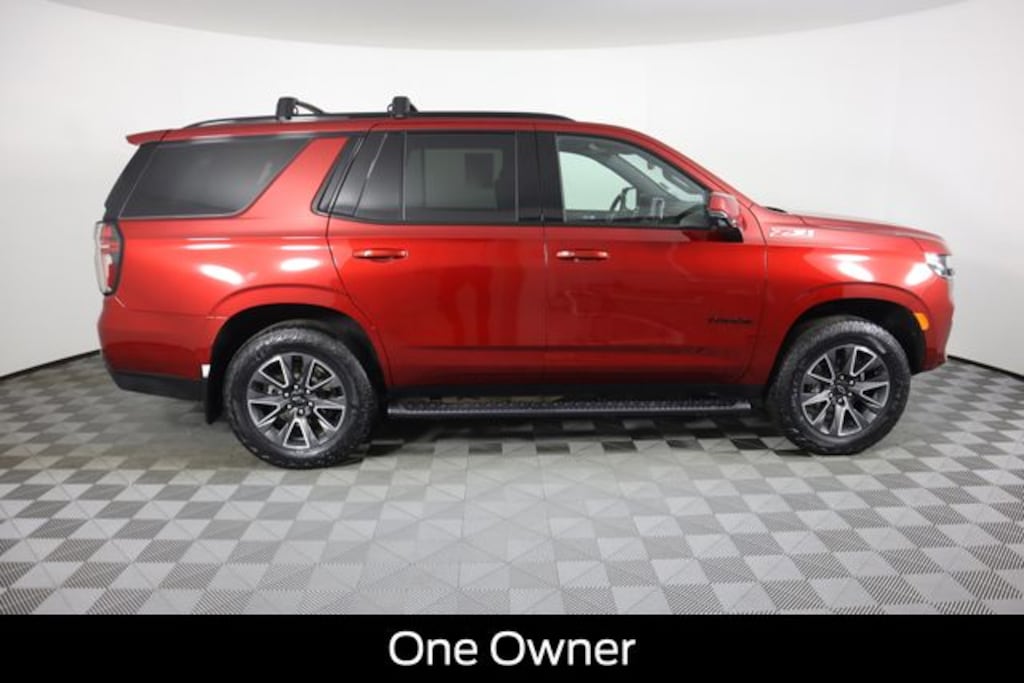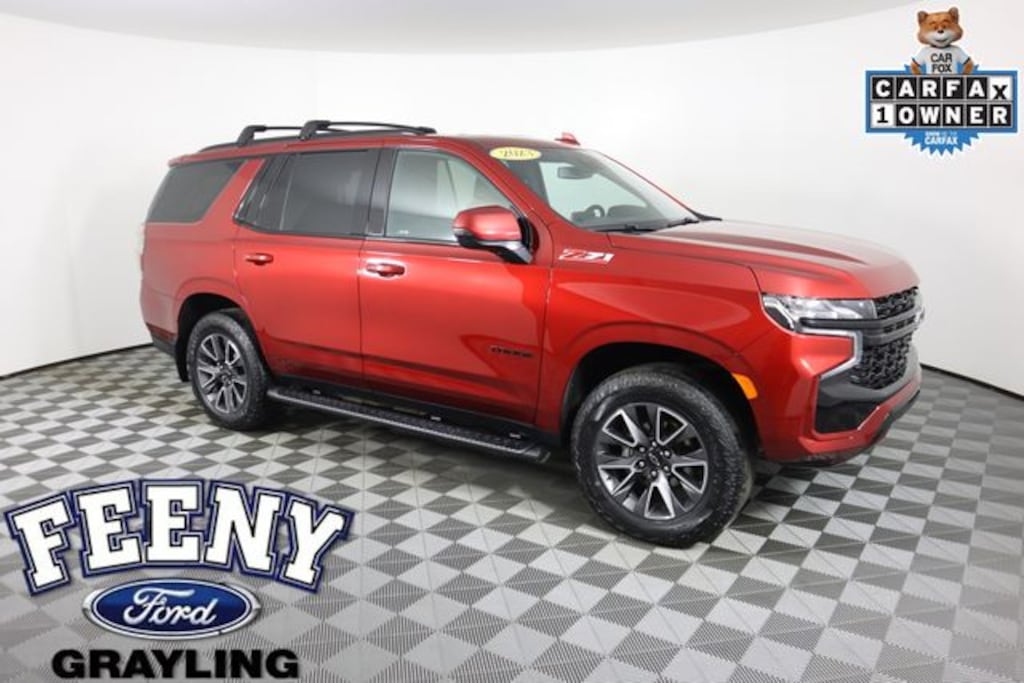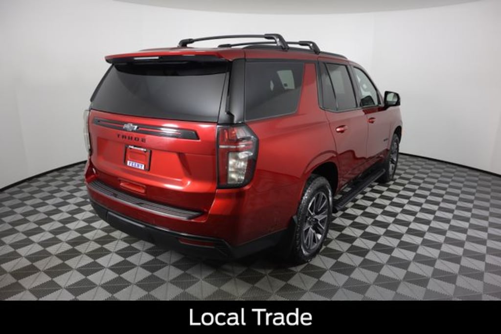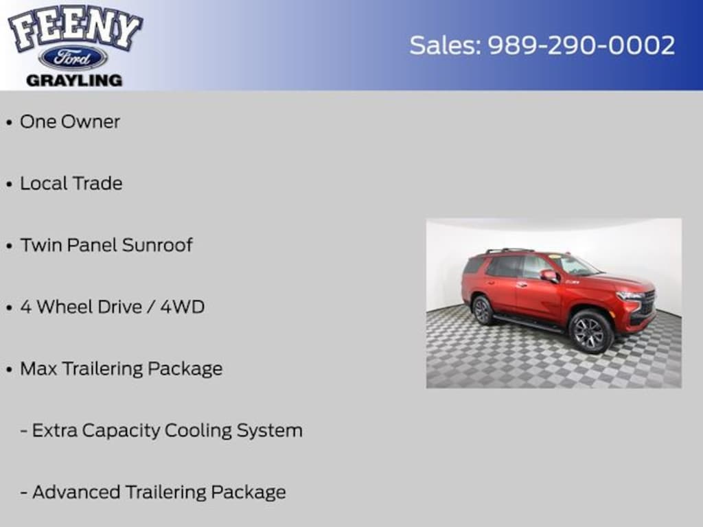New Price! Certified. Radiant Red Tintcoat 2023 Chevrolet Tahoe Z71 4WD 10-Speed Automatic with Overdrive EcoTec3 5.3L V8 Ford Blue Certified - 90-day/4,000 mile Comprehensive Limited Warranty Coverage, One Owner, Local Trade, Twin Panel Sunroof, 4 Wheel Drive / 4WD, Tahoe Z71, 4D Sport Utility, EcoTec3 5.3L V8, 10-Speed Automatic with Overdrive, 4WD, Radiant Red Tintcoat, Black Leather, Dual-Pane Power Panoramic Sunroof, Luxury Package, Max Trailering Package, Off-Road Capability Package, Z71 Off-Road Package.