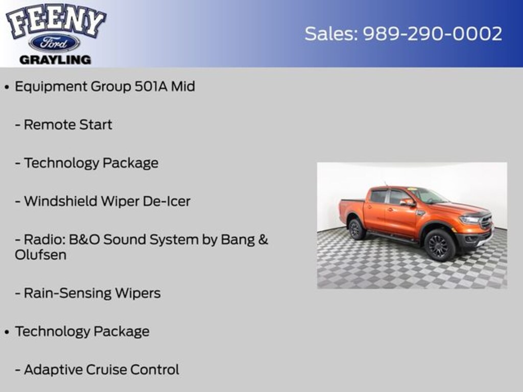 New Price! Certified. Hot Pepper 2019 Ford Ranger Lariat 4WD 10-Speed Automatic EcoBoost 2.3L I4 GTDi DOHC Turbocharged VCT Ranger Lariat, 4D Crew Cab, EcoBoost 2.3L I4 GTDi DOHC Turbocharged VCT, 10-Speed Automatic, 4WD, Hot Pepper, Ebony Leather, Equipment Group 501A Mid, Radio: B&O Sound System by Bang & Olufsen, Rain-Sensing Wipers, Remote Start, Technology Package, Windshield Wiper De-Icer.