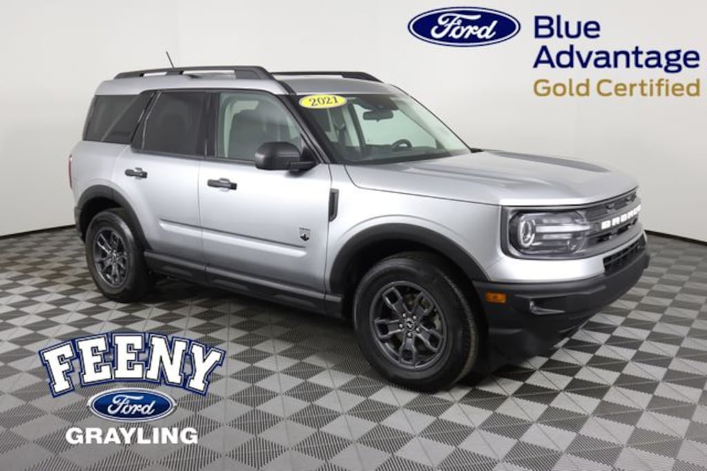 Certified. Iconic Silver Metallic 2021 Ford Bronco Sport Big Bend 4WD 8-Speed Automatic 1.5L EcoBoost Ford Certified - Includes 12-month/12,000 mile Comprehensive Limited Warranty Coverage - 7-year/100, One Owner, 4 Wheel Drive / 4WD, Bronco Sport Big Bend, 4D Sport Utility, 1.5L EcoBoost, 8-Speed Automatic, 4WD, Iconic Silver Metallic, Medium Dark Slate Cloth, 6 Speakers, AM/FM radio: SiriusXM, AM/FM Stereo, Equipment Group 200A, Four wheel independent suspension, Power steering, Power windows, Radio data system, Remote keyless entry, SiriusXM Radio, Speed-sensing steering, Steering wheel mounted audio controls, SYNC 3 Communications & Entertainment System, Traction control.