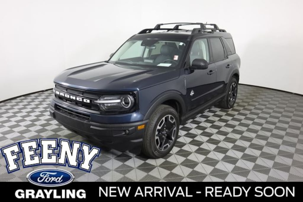 New Price! Certified. Alto Blue Metallic Tinted Clearcoat 2022 Ford Bronco Sport Outer Banks 4WD 8-Speed Automatic 1.5L EcoBoost Bronco Sport Outer Banks, 4D Sport Utility, 1.5L EcoBoost, 8-Speed Automatic, 4WD, Alto Blue Metallic Tinted Clearcoat, Navy Pier Leather, Class II Trailer Tow Package w/Trailer Sway Control, Equipment Group 300A, HD Radio, Tech Package, Universal Garage Door Opener (UGDO), Wireless Charging Pad.