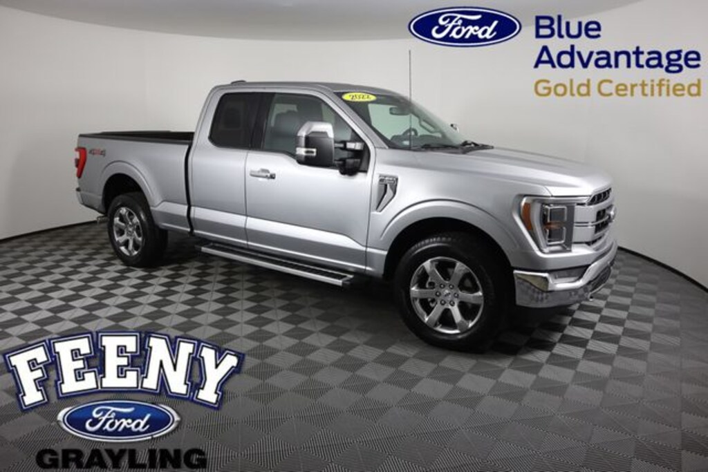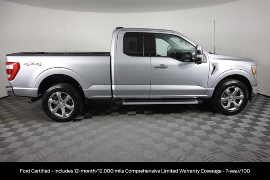 Certified. Iconic Silver Metallic 2022 Ford F-150 Lariat 4WD 10-Speed Automatic 3.5L V6 EcoBoost Ford Certified - Includes 12-month/12,000 mile Comprehensive Limited Warranty Coverage - 7-year/100, Clean Carfax, F-150 Lariat, Super Cab, 3.5L V6 EcoBoost, 10-Speed Automatic, 4WD, Iconic Silver Metallic, Black Leather, Equipment Group 502A High, Heated Steering Wheel, Lariat Chrome Appearance Package, Leather-Trimmed Bucket Seats, LED Projector w/Dynamic Bending Headlamps, Onboard 400W Outlet, Power Glass Sideview Mirr w/Chrome Skull Caps, Power Tilt/Telescoping Steering Column w/Memory, Radio: B&O Sound System by Bang & Olufsen, Rain-Sensing Wipers, Universal Garage Door Opener, Wireless Charging Pad.