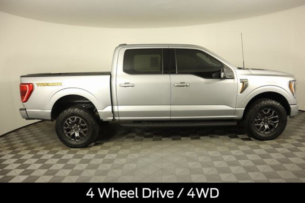Certified. Iconic Silver Metallic 2022 Ford F-150 Tremor 4WD 10-Speed Automatic 3.5L V6 EcoBoost Ford Certified - Includes 12-month/12,000 mile Comprehensive Limited Warranty Coverage - 7-year/100, 4 Wheel Drive / 4WD, Buy with Peace of Mind knowing used vehicle comes with warranty -, Includes Ford Certified Warranty - full tank of gas - two sets of keys - 24 hour roadside assistanc, Bluetooth Connectivity, Ford Pass - Remote Start, Android Auto or Apple Car Play, 4WD, 4-Wheel Disc Brakes, 8" Productivity Screen in Instrument Cluster, ABS brakes, Alloy wheels, Auto High-beam Headlights, Body-Color Door Handles w/Body-Color Bezel, Brake assist, Carpeted Floor Mats w/Tremor Logo, Class IV Trailer Hitch Receiver, Delay-off headlights, Dual front impact airbags, Dual front side impact airbags, Dual Zone Electronic Automatic Temperature Control, Electronic Locking w/3.73 Axle Ratio, Electronic Stability Control, Emergency communication system: SYNC 4 911 Assist, Equipment Group 401A Mid, Extended Range 36 Gallon Fuel Tank, Exterior Parking Camera Rear, Ford Co-Pilot360 2.0, Front anti-roll bar, Front wheel independent suspension, Fully automatic headlights, Heated Front Seats, Integrated Trailer Brake Controller, Intelligent Access w/Push Button Start, Leather-Wrapped Steering Wheel, LED Reflector Headlamps, LED Sideview Mirror Spotlights, Low tire pressure warning, Occupant sensing airbag, Onboard 400W Outlet, Overhead airbag, Panic alarm, Passenger door bin, Power Glass Heated Sideview Mirrors, Power steering, Power windows, Radio data system, Rear Under-Seat Storage, Remote keyless entry, Remote Start System w/Remote Tailgate Release, Security system, Speed-sensing steering, Split folding rear seat, Steering wheel mounted audio controls, Traction control, Trail Control, Trailer Tow Package, Unique Sport Cloth 40/Console/40 Power Front Seat, Variably intermittent wipers, Wheels: 18" Alloy w/Dark Matte Finish, Zone Lighting.