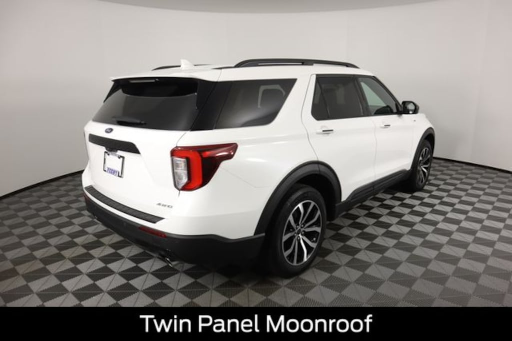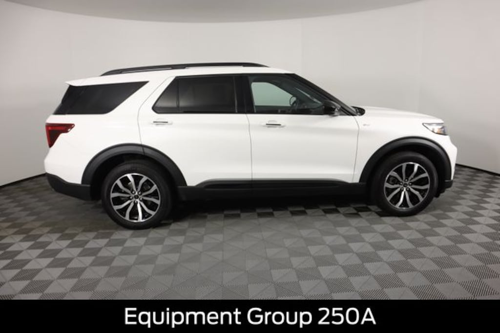New Price! Certified. Star White Metallic Tri-Coat 2023 Ford Explorer ST-Line 4WD 10-Speed Automatic 2.3L EcoBoost I-4 Explorer ST-Line, 4D Sport Utility, 2.3L EcoBoost I-4, 10-Speed Automatic, 4WD, Star White Metallic Tri-Coat, Ebony Leather, Equipment Group 250A, Twin Panel Moonroof.
