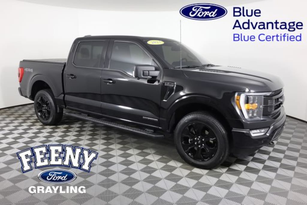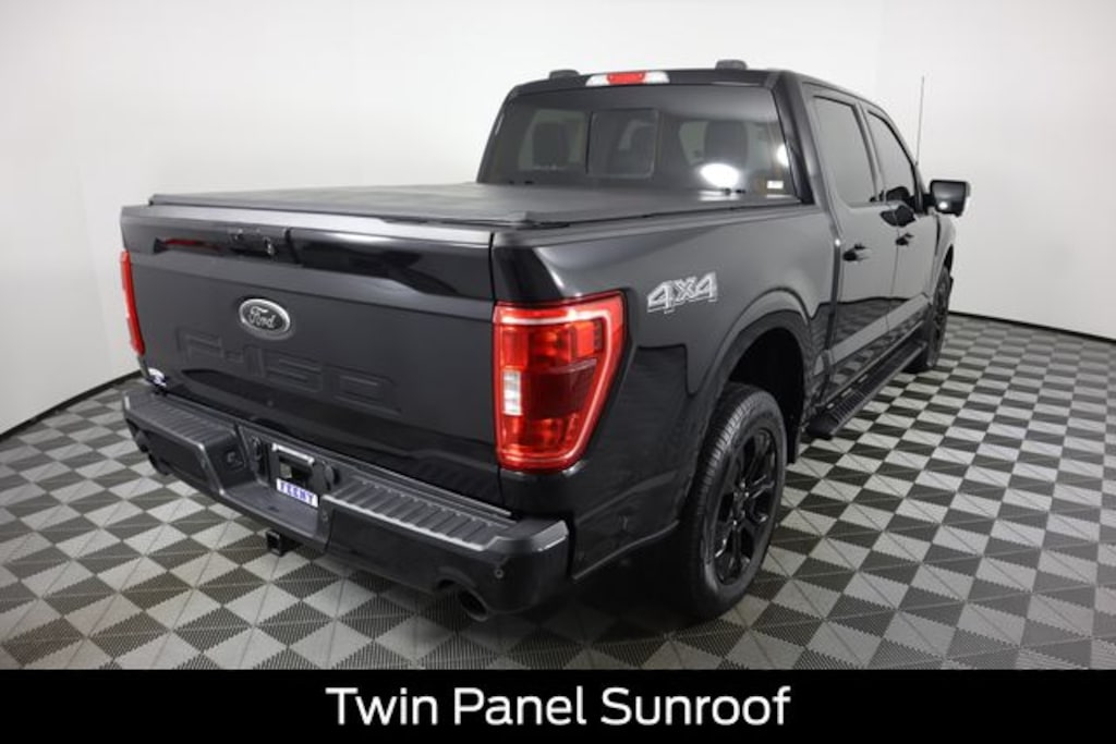 Certified. Agate Black Metallic 2023 Ford F-150 XLT 4WD 10-Speed Automatic 3.5L PowerBoost Full-Hybrid V6 Ford Certified - Includes 12-month/12,000 mile Comprehensive Limited Warranty Coverage - 7-year/100, Twin Panel Sunroof, Buy with Peace of Mind knowing used vehicle comes with warranty -, Includes Ford Certified Warranty - full tank of gas - two sets of keys - 24 hour roadside assistanc, Bluetooth Connectivity, Ford Pass - Remote Start, Android Auto or Apple Car Play, F-150 XLT, 4D SuperCrew, 3.5L PowerBoost Full-Hybrid V6, 10-Speed Automatic, 4WD, Agate Black Metallic, Black w/Leather-Trimmed Bucket Seats, 10-Way Power Driver & Passenger Seats, 8" Productivity Screen in Instrument Cluster, Accent-Color Step Bars, Bed Utility Package, Black 2-Bar Style Grille w/Black Surround/Accents, Body-Color Door & Tailgate Handles, Body-Color Front & Rear Bumpers, Box Side Decals, BoxLink, Class IV Trailer Hitch Receiver, Connected Built-In Navigation, Dual Zone Electronic Automatic Temperature Control, Equipment Group 302A High, Evasive Steering Assist, Ford Co-Pilot360 Assist 2.0, Heated Front Seats, Integrated Trailer Brake Controller, Intelligent Access w/Push Button Start, Intelligent Adaptive Cruise Control w/Stop & Go, Intersection Assist, LED Box Lighting, LED Reflector Headlamps, LED Sideview Mirror Spotlights, Onboard 400W Outlet, Power Glass Heated Sideview Mirrors, Pro Trailer Backup Assist & Pro Trailer Hitch Assist, Rear Under-Seat Storage, Remote Start System w/Remote Tailgate Release, SYNC 4 w/Enhanced Voice Recognition, Tailgate Step w/Tailgate Work Surface, Trailer Tow Package, Twin Panel Moonroof, Unique Sport Cloth 40/Console/40 Front-Seats, Wheels: 20" Gloss Black Painted Aluminum, Wrapped Steering Wheel, XLT Sport Appearance Package, Zone Lighting.