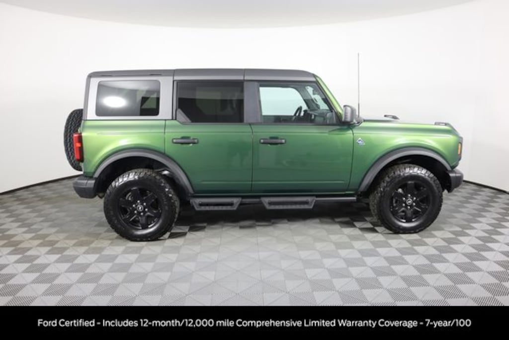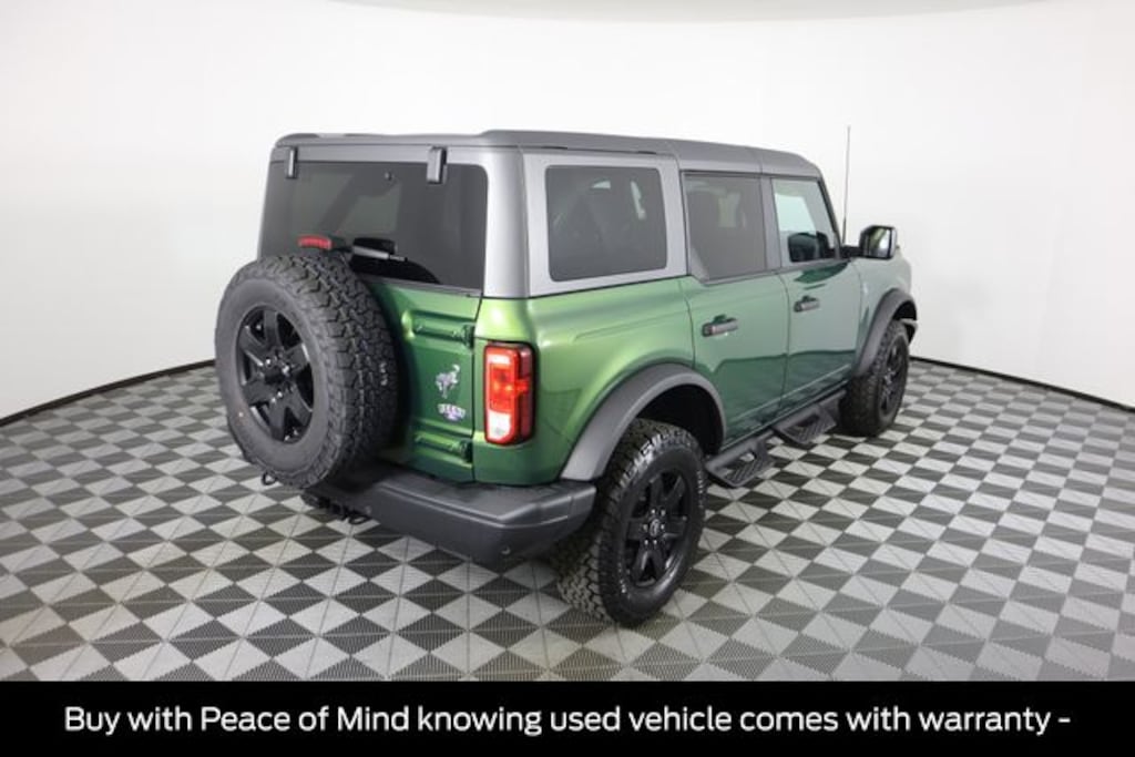 Certified. Eruption Green Metallic 2024 Ford Bronco Black Diamond 4WD 10-Speed Automatic 2.7L EcoBoost V6 Ford Certified - Includes 12-month/12,000 mile Comprehensive Limited Warranty Coverage - 7-year/100, Buy with Peace of Mind knowing used vehicle comes with warranty -, Includes Ford Certified Warranty - full tank of gas - two sets of keys - 24 hour roadside assistanc, Bluetooth Connectivity, Ford Pass - Remote Start, Android Auto or Apple Car Play, Bronco Black Diamond, 4D Sport Utility, 2.7L EcoBoost V6, 10-Speed Automatic, 4WD, Eruption Green Metallic, Black Onyx Vinyl, 2-Door Intelligent Access w/Lock/Unlock, Ambient Footwell Lighting, Auto-Dimming Interior Rear-View Mirror, Connected Navigation, Dr & Pass Illuminated Sliding Visor Vanity Mirrors, Dual Smart Charging USB Ports, Dual-Zone Electronic Automatic Temperature Control, Equipment Group 322A Mid Package, Front Row Heated Seats, Power Outlet - Back Side of Center Floor Console, Rear Parking Sensors, Remote Start System, Trailer Tow Package (DIO).