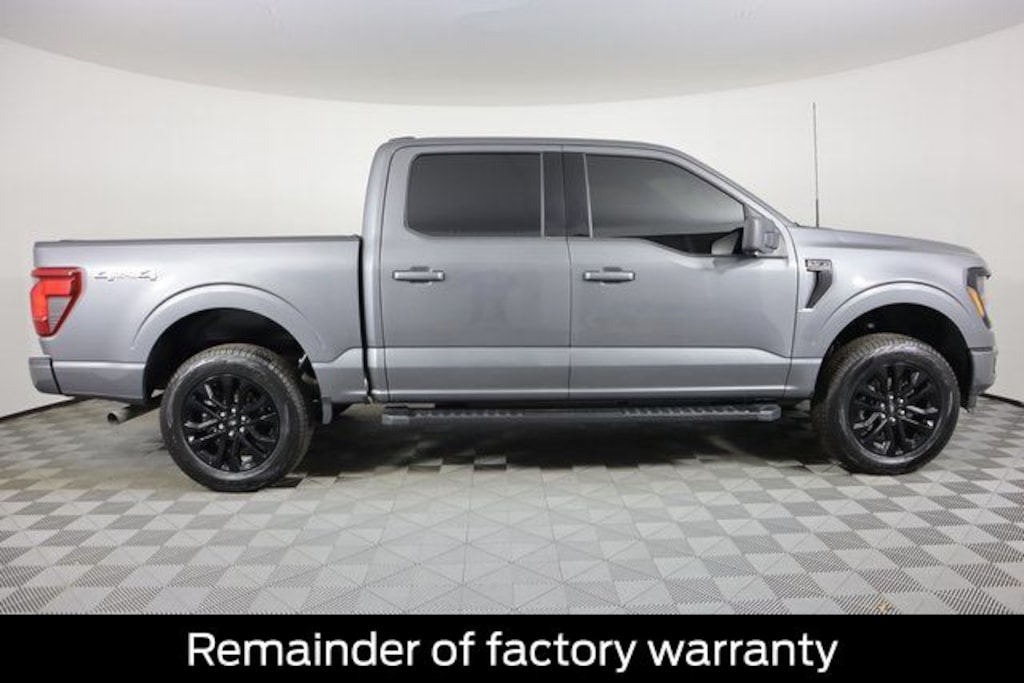 Certified. Carbonized Gray Metallic 2024 Ford F-150 XLT 4WD 10-Speed Automatic 2.7L V6 EcoBoost Ford Certified - Includes 12-month/12,000 mile Comprehensive Limited Warranty Coverage - 7-year/100, Remainder of factory warranty, Clean Carfax, 4 Wheel Drive / 4WD, Buy with Peace of Mind knowing used vehicle comes with warranty -, Includes Ford Certified Warranty - full tank of gas - two sets of keys - 24 hour roadside assistanc, Bluetooth Connectivity, Ford Pass - Remote Start, Android Auto or Apple Car Play, 4D SuperCrew, 2.7L V6 EcoBoost, 10-Speed Automatic, 4WD, Carbonized Gray Metallic, Black w/Unique Sport Cloth 40/Console/40 Front-Seats, 3.55 Axle Ratio, 4-Wheel Disc Brakes, 6 Speakers, 6" Black Running Boards, ABS brakes, Air Conditioning, AM/FM radio: SiriusXM with 360L, Auto High-beam Headlights, Automatic temperature control, Black Exterior Badging, Black Grille, Body-Color Front & Rear Bumpers, Brake assist, Compass, Dark Interior Appliques, Delay-off headlights, Driver door bin, Driver vanity mirror, Dual front impact airbags, Dual front side impact airbags, Electronic Stability Control, Emergency communication system: SYNC 4 911 Assist, Equipment Group 301A Standard, Floor Shifter, Front anti-roll bar, Front Center Armrest w/Storage, Front dual zone A/C, Front fog lights, Front reading lights, Front wheel independent suspension, Fully automatic headlights, Gray Box Side Decal, GVWR: 6,650 lbs Payload Package, Heated door mirrors, Illuminated entry, Low tire pressure warning, Occupant sensing airbag, Outside temperature display, Overhead airbag, Overhead console, Panic alarm, Passenger door bin, Passenger vanity mirror, Power door mirrors, Power driver seat, Power steering, Power windows, Radio data system, Radio: AM/FM SiriusXM w/360L, Rear reading lights, Rear step bumper, Rear window defroster, Remote keyless entry, Security system, Speed control, Split folding rear seat, Steering wheel mounted audio controls, SYNC 4 w/Enhanced Voice Recognition, Tachometer, Telescoping steering wheel, Tilt steering wheel, Traction control, Unique Sport Cloth 40/Console/40 Front-Seats, Variably intermittent wipers, Voltmeter, Wheels: 18" Gloss Black, XLT Black Appearance Package.