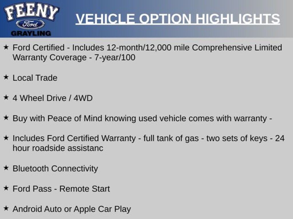 As a Ford Certified pre-owned vehicle, this F-150 STX has undergone a rigorous 172-point inspection and comes with a comprehensive warranty package. You'll have the peace of mind of a 12-month/12,000-mile limited warranty, an 84-month/100,000-mile powertrain warranty, and 22,000 FordPass Rewards Points to use towards your first two maintenance visits.
