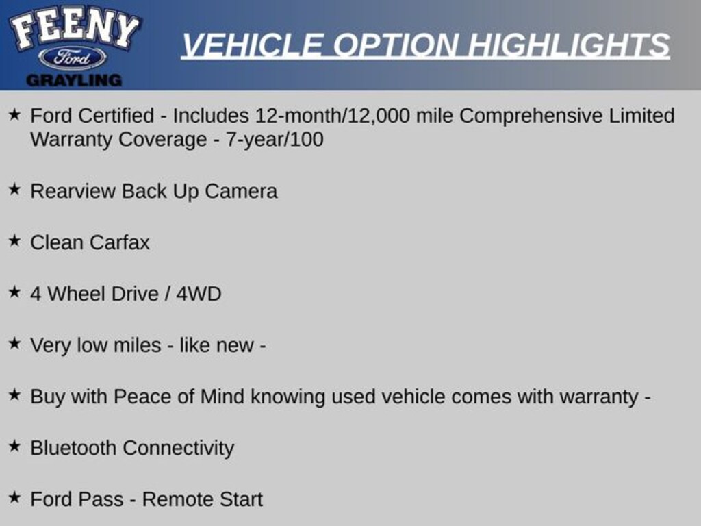 Certified. Rapid Red Metallic Tinted Clearcoat 2024 Ford F-150 XLT 4WD 10-Speed Automatic 2.7L V6 EcoBoost Ford Certified - Includes 12-month/12,000 mile Comprehensive Limited Warranty Coverage - 7-year/100, Rearview Back Up Camera, Clean Carfax, 4 Wheel Drive / 4WD, Very low miles - like new -, Buy with Peace of Mind knowing used vehicle comes with warranty -, Bluetooth Connectivity, Ford Pass - Remote Start, Android Auto or Apple Car Play, F-150 XLT, 4D SuperCrew, 2.7L V6 EcoBoost, 10-Speed Automatic, 4WD, Rapid Red Metallic Tinted Clearcoat, Black Cloth.