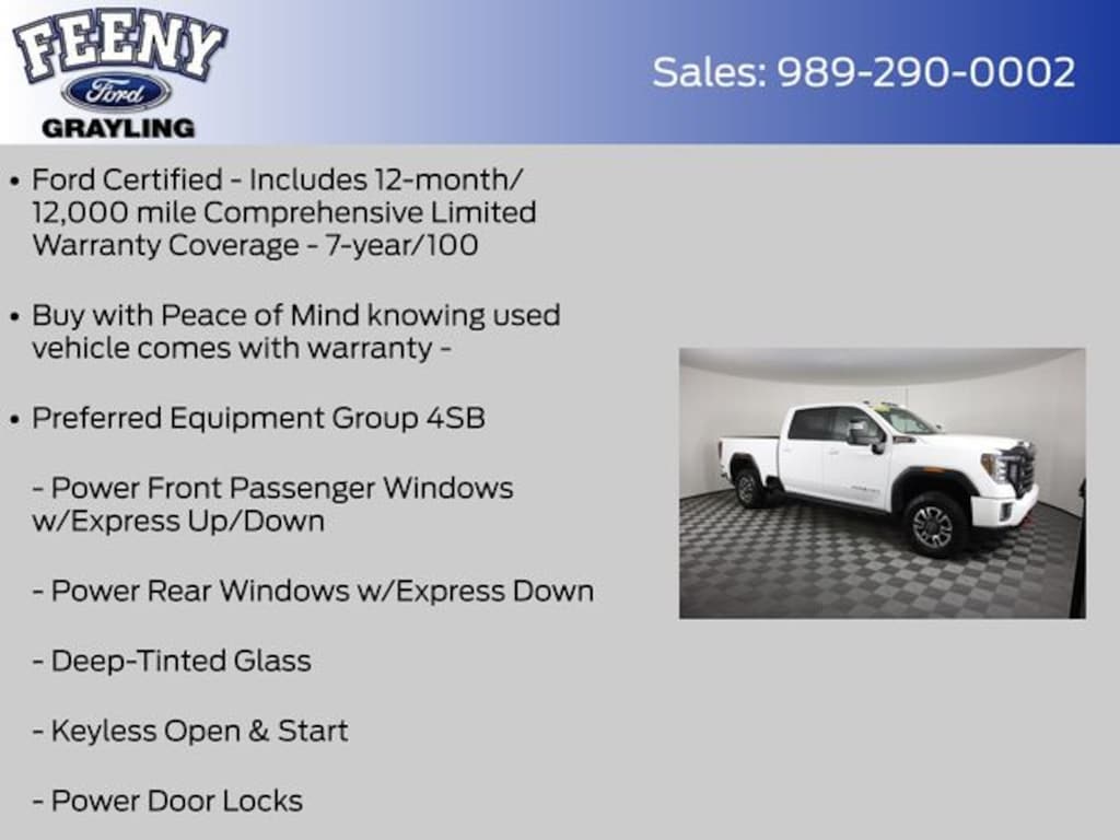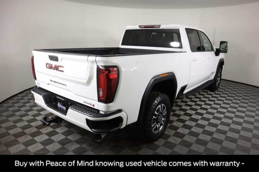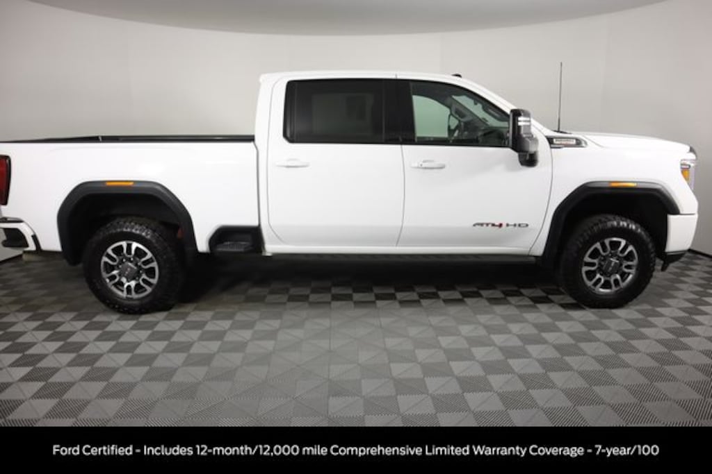 Certified. Summit White 2022 GMC Sierra 2500HD AT4 4WD 10-Speed Automatic Duramax 6.6L V8 Turbodiesel Ford Certified - Includes 12-month/12,000 mile Comprehensive Limited Warranty Coverage - 7-year/100, Buy with Peace of Mind knowing used vehicle comes with warranty -, Sierra 2500HD AAT4, 4D Crew Cab, Duramax 6.6L V8 Turbodiesel, 10-Speed Automatic, 4WD, Summit White, Jet Black With Kalahari Accents Leather, 12-Volt Rear Auxiliary Power Outlet, 120-Volt Bed Mounted Power Outlet, 120-Volt Instrument Panel Power Outlet, 2 USB Ports, 2 USB Ports (1st Row), 2-Speed Active Transfer Case, 220 Amps Alternator, 2nd Row Dual USB Charge-Only Ports, 4.2" Diagonal Color Display Driver Info Center, Compass Located In Instrument Cluster, Deep-Tinted Glass, Electric Rear-Window Defogger, Electrical Lock Control Steering Column, Floor-Mounted Center Console, Front Prem Floor Liners w/Removable Carpet Insert, HD Rear Vision Camera, Heated & Ventilated Front Bucket Seats, Heated Driver & Front Outboard Passenger Seats, Integrated Trailer Brake Controller, Keyless Open & Start, LED Cargo Area Lighting, Manual Tilt-Wheel/Telescoping Steering Column, OnStar & GMC Connected Services Capable, Painted Black Surround Grille, Power Door Locks, Power Front Passenger Windows w/Express Up/Down, Power Rear Windows w/Express Down, Power Windows w/Driver Express Up/Down, Preferred Equipment Group 4SB, Rear Prem Floor Liners w/Removable Carpet Insert, Rear Wheelhouse Liners, Red Recovery Hooks, Remote Vehicle Starter System, Snow Plow Prep/Camper Package, Spray-On Pickup Box Bed Liner w/AT4 Logo, Steering Wheel Audio Controls, Unauthorized Entry Theft-Deterrent System, Wireless Phone Projection, X31 Off-Road Package.