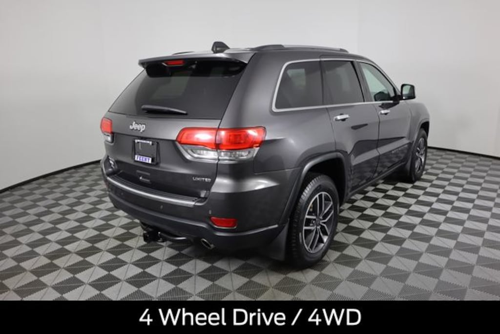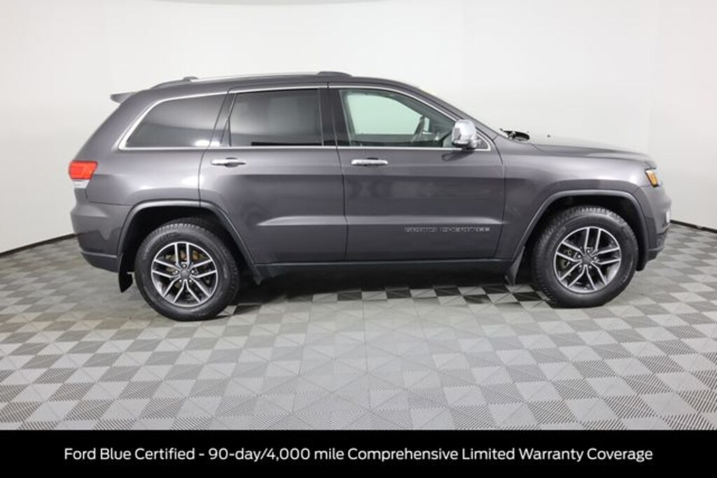 Certified. Granite Crystal Metallic Clearcoat 2019 Jeep Grand Cherokee Limited 4WD 8-Speed Automatic 3.6L V6 24V VVT Ford Blue Certified - 90-day/4,000 mile Comprehensive Limited Warranty Coverage, 4 Wheel Drive / 4WD, Buy with Peace of Mind knowing used vehicle comes with warranty -, Bluetooth Connectivity, Android Auto or Apple Car Play, Grand Cherokee Limited, 4D Sport Utility, 3.6L V6 24V VVT, 8-Speed Automatic, 4WD, Granite Crystal Metallic Clearcoat, Black Leather, Auto High Beam Headlamp Control, Bi-Xenon High-Intensity Discharge Headlamps, Cargo Compartment Cover, Dual-Pane Panoramic Sunroof, Front LED Fog Lamps, Heated front seats, Heated Second Row Seats, Leather Trimmed Bucket Seats, Leather Trimmed Seats w/Perforated Inserts, LED Daytime Running Headlamps, Luxury Group II, ParkView Rear Back-Up Camera, Power passenger seat, Power Tilt/Telescope Steering Column, Premium Alpine Speaker System, Quick Order Package 2BH, Rain Sensitive Windshield Wipers, Ventilated Front Seats.