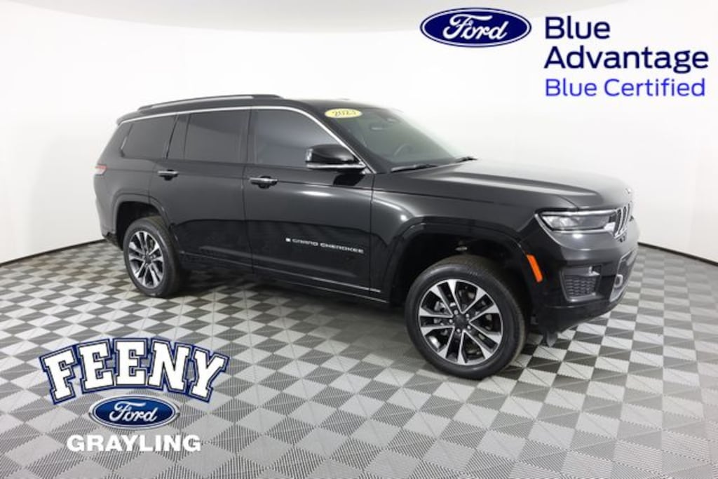Certified. Diamond Black Crystal Pearlcoat 2023 Jeep Grand Cherokee L Overland 4WD 8-Speed Automatic 3.6L V6 24V VVT Ford Blue Certified - 90-day/4,000 mile Comprehensive Limited Warranty Coverage, 3rd Row Seating, One Owner, Clean Carfax, 4 Wheel Drive / 4WD, Buy with Peace of Mind knowing used vehicle comes with warranty -, Bluetooth Connectivity, Android Auto or Apple Car Play, Trailerâ"Tow Package, Grand Cherokee L Overland, 4D Sport Utility, 3.6L V6 24V VVT, 8-Speed Automatic, 4WD, Diamond Black Crystal Pearlcoat, Global Black Leather, AM/FM radio: SiriusXM with 360L, Heated front seats, Heated rear seats, Memory seat, Power Liftgate, Power moonroof, Power passenger seat, Quick Order Package 23N, Radio: Uconnect 5 Nav w/10.1" Display, Reclining 3rd row seat, Ventilated front seats, Wheels: 20" x 8.5" Machined Face Aluminum.
