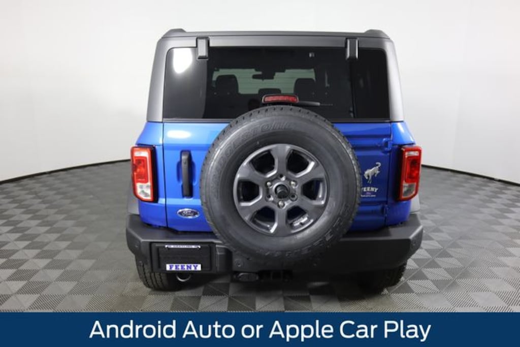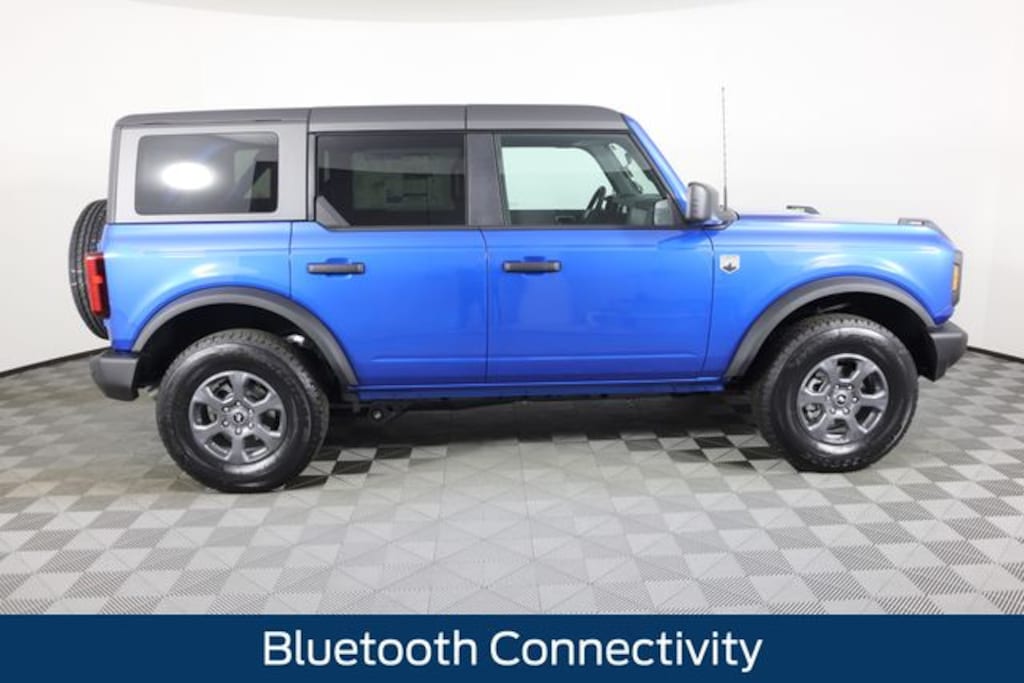 Velocity Blue Metallic 2025 Ford Bronco Big Bend 4WD 10-Speed Automatic 2.3L EcoBoost I-4 Bluetooth Connectivity, Ford Pass - Remote Start, Android Auto or Apple Car Play, FRONT AND REAR WEATHER TECH MATS, 2-Door Intelligent Access w/Lock/Unlock, 3.73 Axle Ratio, 4-Wheel Disc Brakes, 7 Speakers, ABS brakes, Air Conditioning, Alloy wheels, AM/FM radio: SiriusXM with 360L, AM/FM Stereo, Ambient Footwell Lighting, Auto High-beam Headlights, Brake assist, Carbonized Gray Molded-In-Color Hard Top, Compass, Connected Navigation, Delay-off headlights, Door Storage Bags, Dr & Pass Illuminated Sliding Visor Vanity Mirrors, Driver door bin, Driver vanity mirror, Dual front impact airbags, Dual front side impact airbags, Dual Smart Charging USB Ports, Dual-Zone Electronic Automatic Temperature Control, Electronic Stability Control, Emergency communication system: 911 Assist, Equipment Group 222A Mid Package, Exterior Parking Camera Rear, Front anti-roll bar, Front Bucket Seats, Front Center Armrest, Front reading lights, Front Row Heated Seats, Front wheel independent suspension, Fully automatic headlights, Hard Top Sound Deadening Headliner, Heated door mirrors, Illuminated entry, Integrated roll-over protection, Leather Shift Knob, Low tire pressure warning, Occupant sensing airbag, Outside temperature display, Overhead airbag, Overhead console, Panic alarm, Passenger door bin, Passenger vanity mirror, Power door mirrors, Power Outlet - Back Side of Center Floor Console, Power steering, Power windows, Radio data system, Rear Parking Sensors, Rear-Window Defroster & Washer, Remote keyless entry, Security system, SiriusXM w/360L, Speed control, Split folding rear seat, Steering wheel mounted audio controls, SYNC 4, Tachometer, Telescoping steering wheel, Tilt steering wheel, Traction control, Trailer Tow Package (DIO), Trip computer, Variably intermittent wipers, Wheels: 17" Carbonized Gray-Painted Aluminum.