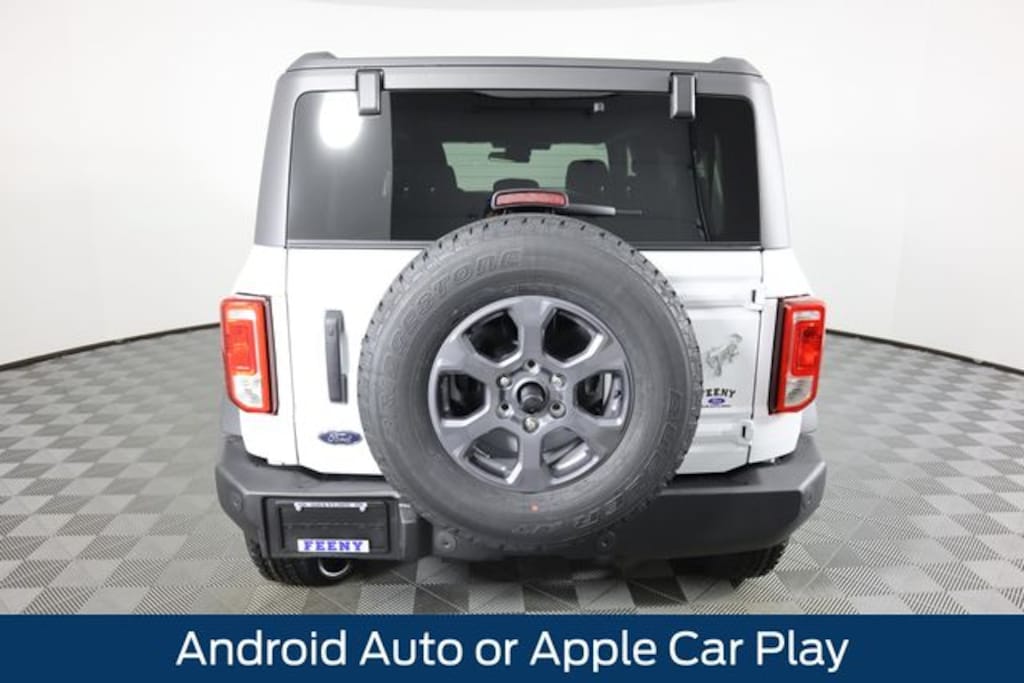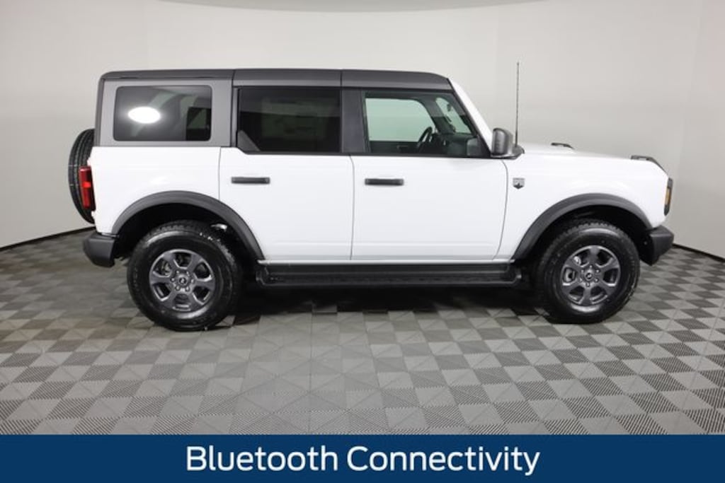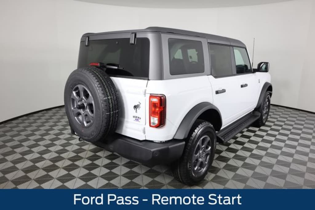 Oxford White 2025 Ford Bronco Big Bend 4WD 2.3L EcoBoost I-4 Bluetooth Connectivity, Ford Pass - Remote Start, Android Auto or Apple Car Play, FRONT AND REAR WEATHER TECH MATS, 2-Door Intelligent Access w/Lock/Unlock, 3.73 Axle Ratio, 4-Wheel Disc Brakes, 7 Speakers, ABS brakes, Air Conditioning, Alloy wheels, AM/FM radio: SiriusXM with 360L, AM/FM Stereo, Ambient Footwell Lighting, Auto High-beam Headlights, Brake assist, Carbonized Gray Molded-In-Color Hard Top, Cloth Bucket Seats, Compass, Connected Navigation, Delay-off headlights, Dr & Pass Illuminated Sliding Visor Vanity Mirrors, Driver door bin, Driver vanity mirror, Dual front impact airbags, Dual front side impact airbags, Dual Smart Charging USB Ports, Dual-Zone Electronic Automatic Temperature Control, Electronic Stability Control, Emergency communication system: 911 Assist, Equipment Group 222A Mid Package, Exterior Parking Camera Rear, Front anti-roll bar, Front Bucket Seats, Front Center Armrest, Front reading lights, Front Row Heated Seats, Front wheel independent suspension, Fully automatic headlights, Heated door mirrors, Illuminated entry, Integrated roll-over protection, Leather Shift Knob, Low tire pressure warning, Navigation System, Occupant sensing airbag, Outside temperature display, Overhead airbag, Overhead console, Panic alarm, Passenger door bin, Passenger vanity mirror, Power door mirrors, Power Outlet - Back Side of Center Floor Console, Power steering, Power windows, Radio data system, Rear Parking Sensors, Rear-Window Defroster & Washer, Remote keyless entry, Security system, Side Step, SiriusXM w/360L, Speed control, Split folding rear seat, Steering wheel mounted audio controls, SYNC 4, Tachometer, Telescoping steering wheel, Tilt steering wheel, Traction control, Trip computer, Variably intermittent wipers, Wheels: 17" Carbonized Gray-Painted Aluminum.