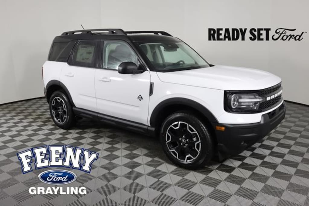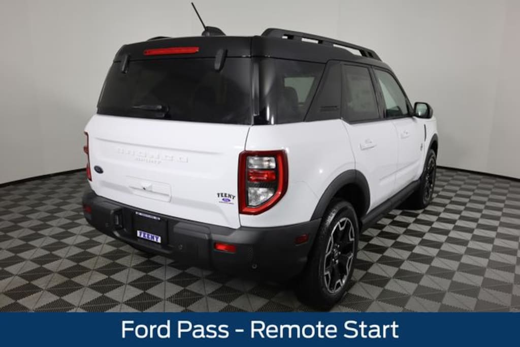 Oxford White 2025 Ford Bronco Sport Outer Banks 4WD 8-Speed Automatic 1.5L EcoBoost Bluetooth Connectivity, Ford Pass - Remote Start, Android Auto or Apple Car Play, FRONT AND REAR WEATHER TECH MATS, 4-Wheel Disc Brakes, 6 Speakers, ABS brakes, Air Conditioning, Alloy wheels, AM/FM radio: SiriusXM, AM/FM Stereo, Auto High-beam Headlights, Auto-dimming Rear-View mirror, Automatic temperature control, Brake assist, Compass, Delay-off headlights, Driver door bin, Driver vanity mirror, Dual front impact airbags, Dual front side impact airbags, Electronic Stability Control, Emergency communication system: SYNC 4 911 Assist, Equipment Group 300A, Four wheel independent suspension, Front anti-roll bar, Front Bucket Seats, Front Center Armrest, Front Driver/Passenger Seat Back Map Pockets, Front dual zone A/C, Front fog lights, Front reading lights, Fully automatic headlights, Garage door transmitter, Heated door mirrors, Heated front seats, Heated steering wheel, Illuminated entry, Knee airbag, Low tire pressure warning, Memory seat, Occupant sensing airbag, Outside temperature display, Overhead airbag, Overhead console, Panic alarm, Passenger door bin, Passenger vanity mirror, Power door mirrors, Power driver seat, Power passenger seat, Power steering, Power windows, Premium Trimmed Front Bucket Seats w/Ebony/Roast, Premium Trimmed Front Bucket Seats w/Platinum Blue, Radio data system, Rain sensing wipers, Rear anti-roll bar, Rear Parking Sensors, Rear reading lights, Rear seat center armrest, Rear window defroster, Rear window wiper, Remote keyless entry, Security system, SiriusXM, Speed control, Speed-sensing steering, Speed-Sensitive Wipers, Split folding rear seat, Steering wheel mounted audio controls, SYNC 4 w/Enhanced Voice Recognition, Tachometer, Telescoping steering wheel, Tilt steering wheel, Traction control, Trip computer, Variably intermittent wipers, Wheels: 18" Ebony Black-Painted Aluminum.