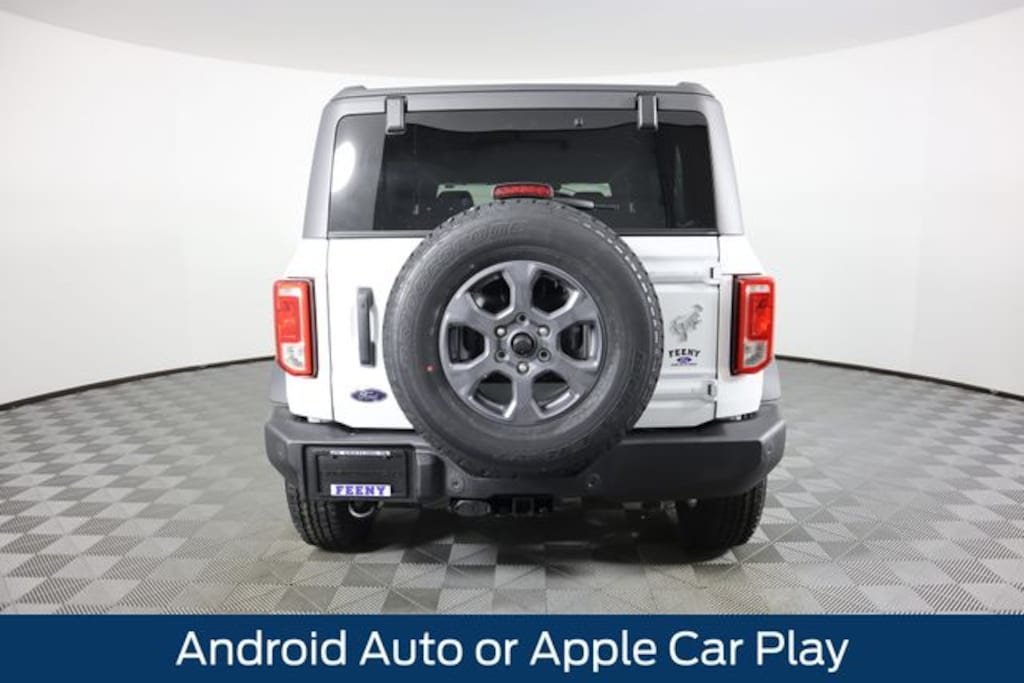 Oxford White 2025 Ford Bronco Big Bend 4WD 10-Speed Automatic 2.3L EcoBoost I-4 Bluetooth Connectivity, Ford Pass - Remote Start, Android Auto or Apple Car Play, FRONT AND REAR WEATHER TECH MATS, 2-Door Intelligent Access w/Lock/Unlock, 3.73 Axle Ratio, 4-Wheel Disc Brakes, 7 Speakers, ABS brakes, Air Conditioning, Alloy wheels, AM/FM radio: SiriusXM with 360L, AM/FM Stereo, Ambient Footwell Lighting, Auto High-beam Headlights, Brake assist, Carbonized Gray Molded-In-Color Hard Top, Cloth Bucket Seats, Compass, Connected Navigation, Delay-off headlights, Door Storage Bags, Dr & Pass Illuminated Sliding Visor Vanity Mirrors, Driver door bin, Driver vanity mirror, Dual front impact airbags, Dual front side impact airbags, Dual Smart Charging USB Ports, Dual-Zone Electronic Automatic Temperature Control, Electronic Stability Control, Emergency communication system: 911 Assist, Equipment Group 222A Mid Package, Exterior Parking Camera Rear, Front anti-roll bar, Front Bucket Seats, Front Center Armrest, Front reading lights, Front Row Heated Seats, Front wheel independent suspension, Fully automatic headlights, Hard Top Sound Deadening Headliner, Heated door mirrors, Illuminated entry, Integrated roll-over protection, Leather Shift Knob, Low tire pressure warning, Occupant sensing airbag, Outside temperature display, Overhead airbag, Overhead console, Panic alarm, Passenger door bin, Passenger vanity mirror, Power door mirrors, Power Outlet - Back Side of Center Floor Console, Power steering, Power windows, Radio data system, Rear Parking Sensors, Rear-Window Defroster & Washer, Remote keyless entry, Security system, Side Step, SiriusXM w/360L, Speed control, Split folding rear seat, Steering wheel mounted audio controls, SYNC 4, Tachometer, Telescoping steering wheel, Tilt steering wheel, Traction control, Trailer Tow Package (DIO), Trip computer, Variably intermittent wipers, Wheels: 17" Carbonized Gray-Painted Aluminum.