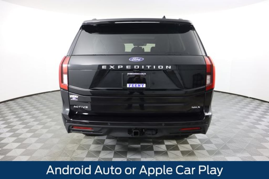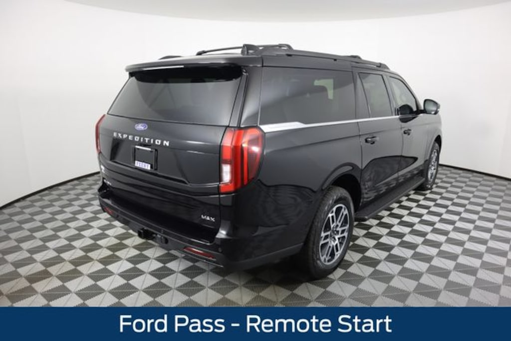 Agate Black Metallic 2025 Ford Expedition Max Active 4WD 10-Speed Automatic EcoBoost 3.5L V6 GTDi DOHC 24V Twin Turbocharged Bluetooth Connectivity, Ford Pass - Remote Start, Android Auto or Apple Car Play, 110V/400W AC Power Outlet, 26mm Engine Radiator, 2nd Row Power-Folding Captain's Chairs, 3.73 Axle Ratio, 360-Degree Zone Lighting, 3rd Row Flexible Seating, 3rd row seats: split-bench, 3rd Row Vinyl Seats, 4-Door Intelligent Access (Lock/Unlock), 4-Wheel Disc Brakes, 6 Speakers, ABS brakes, ActiveX Front Heated Captain's Chairs, Air Conditioning, AM/FM radio: SiriusXM with 360L, Apple CarPlay/Android Auto, Auto High-beam Headlights, Auto-dimming Rear-View mirror, Automatic temperature control, BlueCruise Equipped, BlueCruise Equipped -90 Day Trial, Brake assist, Bumpers: body-color, Cloth Front Captain's Chairs, Compass, Delay-off headlights, Driver door bin, Driver vanity mirror, Dual front impact airbags, Dual front side impact airbags, Electronic Stability Control, Emergency communication system: 911 Assist, Equipment Group 202A High Package, Exterior Parking Camera Rear, Flex Powered Console, Ford Split Gate, Four wheel independent suspension, Front anti-roll bar, Front Bucket Seats, Front Center Armrest, Front dual zone A/C, Front reading lights, Front Side Laminated Glass, Fully automatic headlights, Heated door mirrors, Heated Steering Wheel, Heavy-Duty Trailer Tow, Illuminated entry, Integrated Trailer Brake Control, Low tire pressure warning, Memory Driver Seat, Navigation System, Occupant sensing airbag, Outside temperature display, Overhead airbag, Overhead console, Panic alarm, Passenger door bin, Passenger vanity mirror, Power door mirrors, Power driver seat, Power Panoramic Vista Roof w/Power Sunshade, Power passenger seat, Power steering, Power Tilt/Telescopic Steering Wheel w/Memory, Power windows, Power-Folding Sideview Mirrors w/Autofold, Radio data system, Radio: AM/FM Stereo w/MP3 Capable, Rain Sensing Wipers, Rear air conditioning, Rear anti-roll bar, Rear reading lights, Rear window defroster, Rear window wiper, Reclining 3rd row seat, Remote keyless entry, SecuriCode Keyless Entry Keypad (DIO), Security system, SiriusXM w/360L, Speed control, Speed-sensing steering, Speed-Sensitive Wipers, Split folding rear seat, Spoiler, Steering wheel mounted audio controls, Tachometer, Telescoping steering wheel, Tilt steering wheel, Traction control, Trip computer, Universal Garage Door Opener, USB Ports, Variably intermittent wipers, Voltmeter, Wheels: 20" Carbonized Gray Bright Machined Aluminum, Wireless Charging Pad.