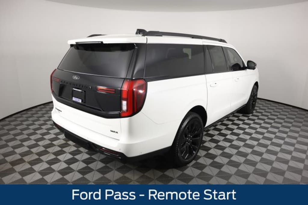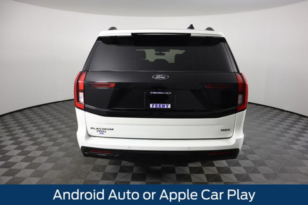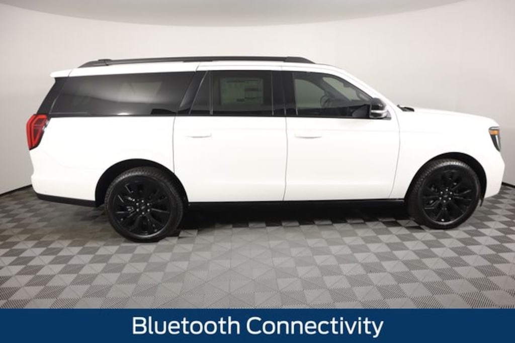 Star White Metallic Tri-Coat 2025 Ford Expedition Max Platinum 4WD 10-Speed Automatic EcoBoost 3.5L V6 GTDi DOHC 24V Twin Turbocharged Bluetooth Connectivity, Ford Pass - Remote Start, Android Auto or Apple Car Play, CONNECTIVITY PKG 1 YEAR INCLUDED, 10 Speakers, 2nd Row Power-Folding Captain's Chairs, 3rd row seats: split-bench, 4-Wheel Disc Brakes, ABS brakes, Adjustable pedals, Air Conditioning, AM/FM radio: SiriusXM with 360L, Apple CarPlay/Android Auto, Auto High-beam Headlights, Auto-dimming door mirrors, Auto-dimming Rear-View mirror, Automatic temperature control, Black Belt Molding, Black Expedition Lettering On Hood, Black Headlamp Bezel w/Ebony Trim Applique, Black Platinum Badge On Tailgate, Black Roof Rails, BlueCruise Equipped -90 Day Trial, Brake assist, Bumpers: body-color, Carbon Black Front Bumper/Fascia, Compass, Delay-off headlights, Driver door bin, Driver vanity mirror, Dual front impact airbags, Dual front side impact airbags, Electronic Stability Control, Emergency communication system: 911 Assist, Engine Sound Enhancer, Equipment Group 600A Standard Package, Exterior Parking Camera Rear, Four wheel independent suspension, Front anti-roll bar, Front Bucket Seats, Front Center Armrest, Front dual zone A/C, Front reading lights, Fully automatic headlights, Garage door transmitter, Genuine wood dashboard insert, Genuine wood door panel insert, Heated & Ventilated Leather Front Captain's Chairs, Heated door mirrors, Heated front seats, Heated rear seats, Heated steering wheel, Illuminated entry, Leather steering wheel, Low tire pressure warning, Memory seat, Multicontour Active Motion Lthr Frnt Captains Chairs, Navigation System, Occupant sensing airbag, Outside temperature display, Overhead airbag, Overhead console, Panic alarm, Passenger door bin, Passenger vanity mirror, Pedal memory, Power door mirrors, Power driver seat, Power moonroof: Vista Roof, Power passenger seat, Power steering, Power windows, Radio data system, Radio: B&O Sound System by Bang & Olufsen, Rain sensing wipers, Rear air conditioning, Rear anti-roll bar, Rear reading lights, Rear Side Windows Laminated Glass, Rear window defroster, Rear window wiper, Reclining 3rd row seat, Remote keyless entry, Security system, Signature Grille Lighting, SiriusXM w/360L, Speed control, Speed-sensing steering, Speed-Sensitive Wipers, Split folding rear seat, Spoiler, Stealth Appearance Package, Steering wheel memory, Steering wheel mounted audio controls, Tachometer, Telescoping steering wheel, Tilt steering wheel, Traction control, Trip computer, Turn signal indicator mirrors, Variably intermittent wipers, Ventilated front seats, Voltmeter, Wheels: 22" Ebony Painted Aluminum.