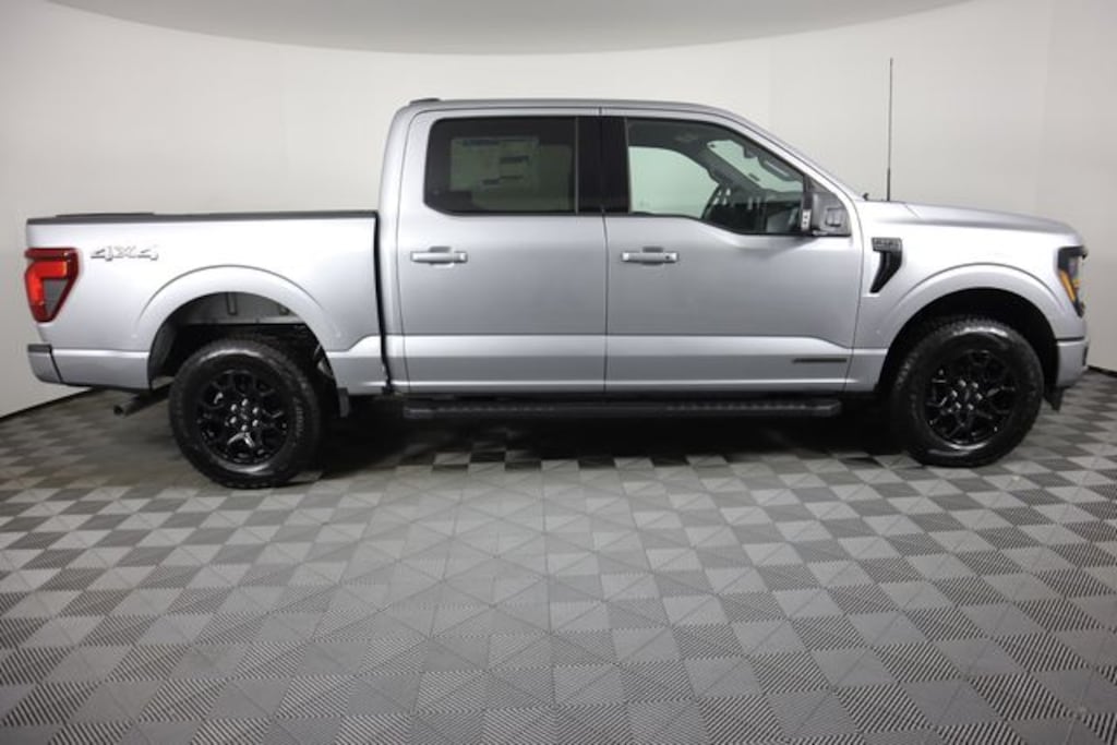 Iconic Silver Metallic 2025 Ford F-150 XLT 4WD 10-Speed Automatic 3.5L PowerBoost Full-Hybrid V6 Bluetooth Connectivity, Ford Pass - Remote Start, Android Auto or Apple Car Play, FRONT AND REAR WEATHER TECH MATS, F150 TAILGATE DECAL, FORD BEDLINER, 3.5L PowerBoost Full-Hybrid V6, 4WD, 360 Degree Camera, 4-Wheel Disc Brakes, 400W Cab & Bed Outlets, 6 Speakers, 6" Angular Bright Anodized Step Bar, 6" Black Running Boards, ABS brakes, Adaptive Cruise Control w/Stop & Go, Air Conditioning, AM/FM radio: SiriusXM with 360L, Auto High-beam Headlights, Auto-Dimming Rear-View Mirror, Black Exterior Badging, Black Grille, Black Painted Grille w/Chrome Center Bar, Black Platform Running Boards, Body-Color Front & Rear Bumpers, Brake assist, Chrome Door & Tailgate Handles, Chrome Single-Tip Exhaust, Cloth 40/20/40 Front Seat, Cloth 40/Console/40 Front Seats, Compass, Connected Navigation, Console Worksurface, Dark Interior Appliques, Delay-off headlights, Driver door bin, Driver State Detection, Driver vanity mirror, Dual front impact airbags, Dual front side impact airbags, Dual-Zone Electronic Automatic Temperature Control, Electronic Locking w/3.73 Axle Ratio, Electronic Stability Control, Emergency communication system: SYNC 4 911 Assist, Equipment Group 302A Mid, Evasive Steering Assist, Floor Shifter, Ford Co-Pilot360 Assist 2.0, Front anti-roll bar, Front Center Armrest, Front fog lights, Front Parking Sensors, Front reading lights, Front wheel independent suspension, Fully automatic headlights, Gray Box Side Decal, GVWR: 7,400 lbs Payload Package, Heated door mirrors, Heated Front Seats, Illuminated entry, Intelligent Access w/Push Button Start, Low tire pressure warning, Mobile Office Package, Occupant sensing airbag, Outside temperature display, Overhead airbag, Overhead console, Panic alarm, Partitioned Lockable Rear Storage, Passenger door bin, Passenger vanity mirror, Power door mirrors, Power Glass Heated Sideview Mirrors, Power steering, Power windows, Power-Sliding Rear Window, Radio data system, Radio: AM/FM Stereo w/SiriusXM 360L, Rear Parking Sensors, Rear reading lights, Rear step bumper, Rear window defroster, Remote keyless entry, Remote Start System w/Remote Tailgate Release, SecuriCode Keyless-Entry Keypad (DIO), Security system, Speed control, Split folding rear seat, Steering wheel mounted audio controls, SYNC 4 w/Enhanced Voice Recognition, Tachometer, Telescoping steering wheel, Tilt steering wheel, Towing Technology, Traction control, Tray Style Floor Liner w/Carpet Mats, Trip computer, Unique Sport Cloth 40/Console/40 Front-Seats, Variably intermittent wipers, Voltmeter, Wheels: 18" Gloss Black, Wrapped Steering Wheel, XLT Black Appearance Package.