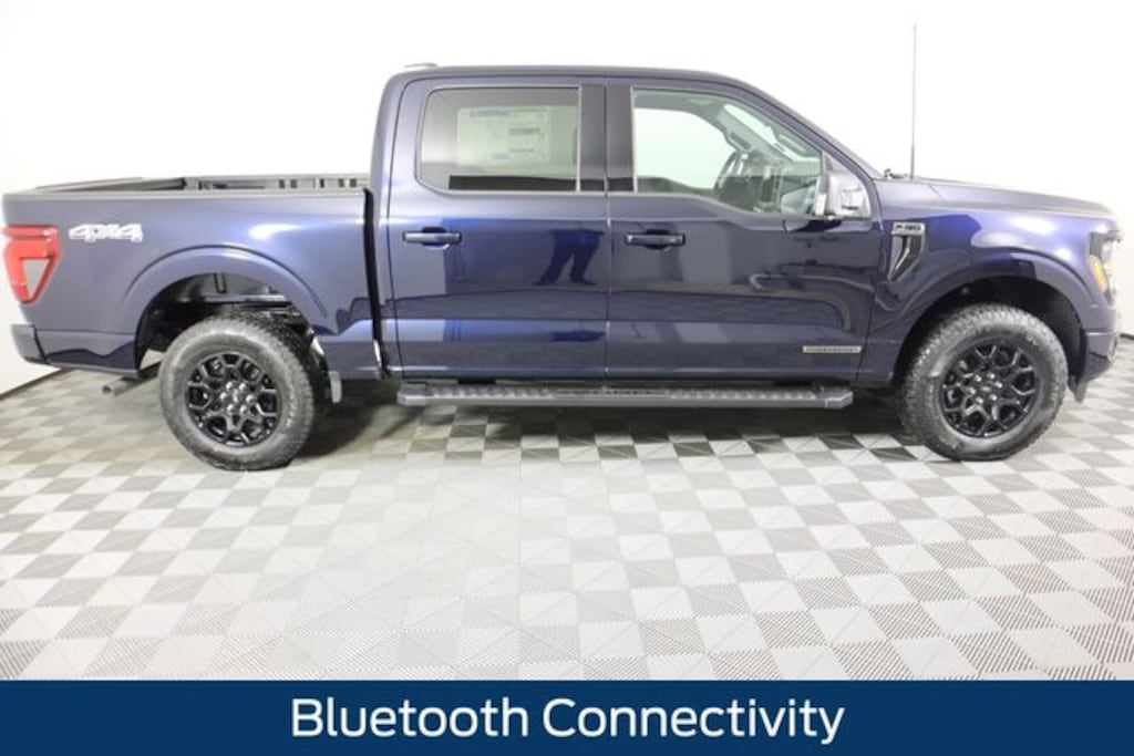 Antimatter Blue Metallic 2025 Ford F-150 XLT 4WD 10-Speed Automatic 3.5L PowerBoost Full-Hybrid V6 Bluetooth Connectivity, Ford Pass - Remote Start, Android Auto or Apple Car Play, F-150 XLT, 4D SuperCrew, 3.5L PowerBoost Full-Hybrid V6, 10-Speed Automatic, 4WD, Antimatter Blue Metallic, Black w/Medium Dark Slate w/Cloth 40/20/40 Front Seat w/Console, 360 Degree Camera, 400W Cab & Bed Outlets, 6" Angular Bright Anodized Step Bar, 6" Black Running Boards, Adaptive Cruise Control w/Stop & Go, Auto-Dimming Rear-View Mirror, Black Exterior Badging, Black Grille, Black Painted Grille w/Chrome Center Bar, Body-Color Front & Rear Bumpers, Chrome Door & Tailgate Handles, Chrome Single-Tip Exhaust, Cloth 40/Console/40 Front Seats, Connected Navigation, Console Worksurface, Dark Interior Appliques, Driver State Detection, Dual-Zone Electronic Automatic Temperature Control, Equipment Group 302A Mid, Evasive Steering Assist, Floor Shifter, Ford Co-Pilot360 Assist 2.0, Front Parking Sensors, Gray Box Side Decal, Heated Front Seats, Intelligent Access w/Push Button Start, Mobile Office Package, Partitioned Lockable Rear Storage, Power Glass Heated Sideview Mirrors, Power-Sliding Rear Window, Remote Start System w/Remote Tailgate Release, Towing Technology, Unique Sport Cloth 40/Console/40 Front-Seats, Wheels: 18" Gloss Black, Wrapped Steering Wheel, XLT Black Appearance Package.