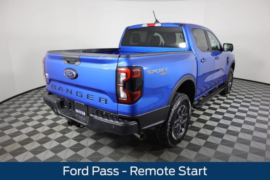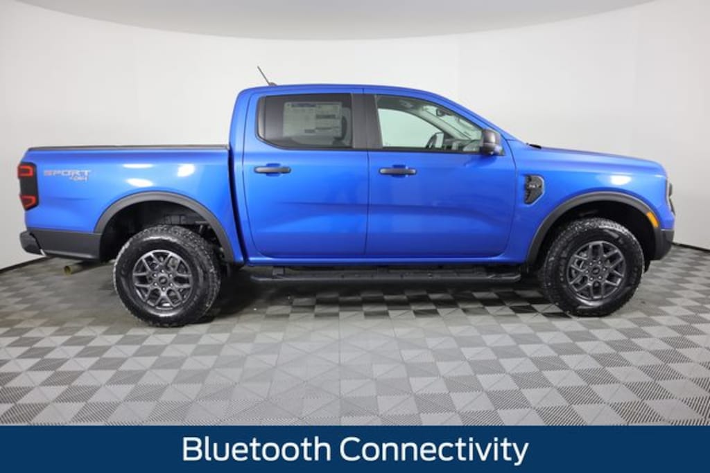 Velocity Blue Metallic 2025 Ford Ranger XLT 4WD 10-Speed Automatic 2.7L EcoBoost V6 Bluetooth Connectivity, Ford Pass - Remote Start, Android Auto or Apple Car Play, FRONT AND REAR WEATHER TECH MATS, 4WD, 3.73 Axle Ratio, 360-Degree Camera, 4-Wheel Disc Brakes, 6 Speakers, ABS brakes, Adaptive Cruise Control, Air Conditioning, Alloy wheels, AM/FM radio: SiriusXM, AM/FM Stereo, Auto High-beam Headlights, Auto-dimming Rear-View mirror, Black Running Boards, Blk SecuriCode Wireless Keyless Entry Keypad (DIO), Brake assist, Class IV Trailer Hitch Receiver, Cloth Front Bucket Seats, Compass, Delay-off headlights, Driver door bin, Driver vanity mirror, Dual front impact airbags, Dual front side impact airbags, Electronic Stability Control, Emergency communication system: SYNC 4 911 Assist, Equipment Group 300A Standard, Front anti-roll bar, Front Bucket Seats, Front Center Armrest, Front fog lights, Front Parking Sensors, Front reading lights, Front wheel independent suspension, Fully automatic headlights, Gray Painted Center Bar & Grille Surround, Gray Painted Front Fascia & Rear Bumper, Illuminated entry, Leather Shift Knob, Low tire pressure warning, Occupant sensing airbag, Outside temperature display, Overhead airbag, Overhead console, Panic alarm, Passenger door bin, Passenger vanity mirror, Power door mirrors, Power steering, Power windows, Rear reading lights, Rear seat center armrest, Rear step bumper, Rear window defroster, Remote keyless entry, Security system, SiriusXM Satellite Radio, Speed control, Speed-sensing steering, Sport Appearance Package, Sport Box Decal, Steering wheel mounted audio controls, SYNC 4A w/Connected Navigation, Technology Package, Telescoping steering wheel, Tilt steering wheel, Traction control, Trailer Tow Package, Trip computer, Variably intermittent wipers, Voltmeter, Wheels: 17" Gray-Painted Aluminum.