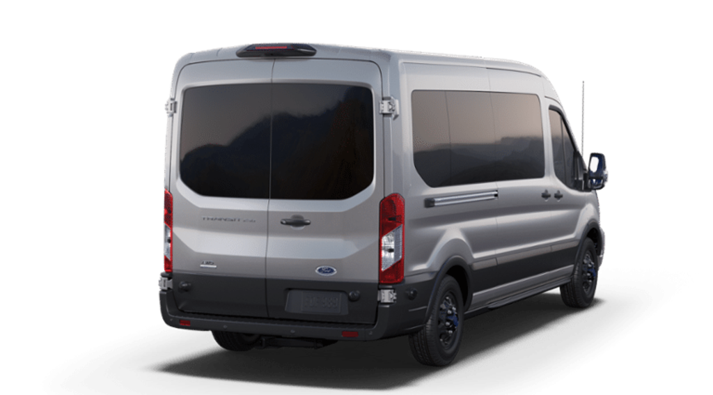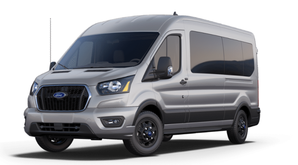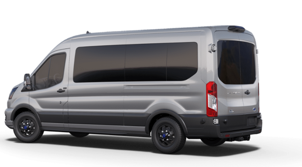 Ingot Silver Metallic 2025 Ford Transit-350 XLT AWD 10-Speed Automatic with Overdrive EcoBoost 3.5L V6 GTDi DOHC 24V Twin Turbocharged Bluetooth Connectivity, Ford Pass - Remote Start, Android Auto or Apple Car Play, 15-Passenger Seats, 2 Additional Keys (4 Total), 253-Degree Rear Door, 3.73 Limited-Slip Axle Ratio, 3rd row seats: split-bench, 4-Wheel Disc Brakes, 4th-Row Bench Seat, 8 Speakers, ABS brakes, Air Conditioning, AM/FM radio, Auto High-beam Headlights, Brake assist, Cloth Front Bucket Seats, Dark Palazzo Gray Cloth Bucket Seats, Delay-off headlights, Driver door bin, Driver vanity mirror, Driver's Seat Mounted Armrest, Dual AGM Batteries (70 Amp-hr Each), Dual front impact airbags, Dual front side impact airbags, Electronic Air Temperature Control, Electronic Stability Control, Extended Length Running Boards, Frame Mounted Hitch Receiver, Front anti-roll bar, Front Bucket Seats, Front Fog Lamps, Front License Plate Bracket, Front reading lights, Front Sensing System, Front wheel independent suspension, Fully automatic headlights, Heavy-Duty Trailer Tow Package, Illuminated entry, Intelligent Adaptive Cruise Control, Intelligent Speed Assist (ISA), Intersection Assist, Keyless Entry Keypad, Large Center Console, Low tire pressure warning, Occupant sensing airbag, Order Code 302A, Overhead airbag, Panic alarm, Passenger door bin, Passenger seat mounted armrest, Passenger vanity mirror, Power door mirrors, Power steering, Power windows, Privacy Glass, Radio: AM/FM Stereo w/SYNC 4 & Nav, Radio: AM/FM Stereo w/SYNC 4/SiriusXM w/360L/Nav/iACC, Rain sensing wipers, Rear air conditioning, Rear window defroster, Remote keyless entry, Reverse Sensing System, Side Sensing System, Speed control, Steering wheel mounted audio controls, Tachometer, Telescoping steering wheel, Tilt steering wheel, Tow/Haul Mode w/Trailer Wiring Prov, Traction control, Traffic Sign Recognition (TSR), Trailer Brake Controller (TBC), Variably intermittent wipers, Wheels: 16" Matte Black Alloy.