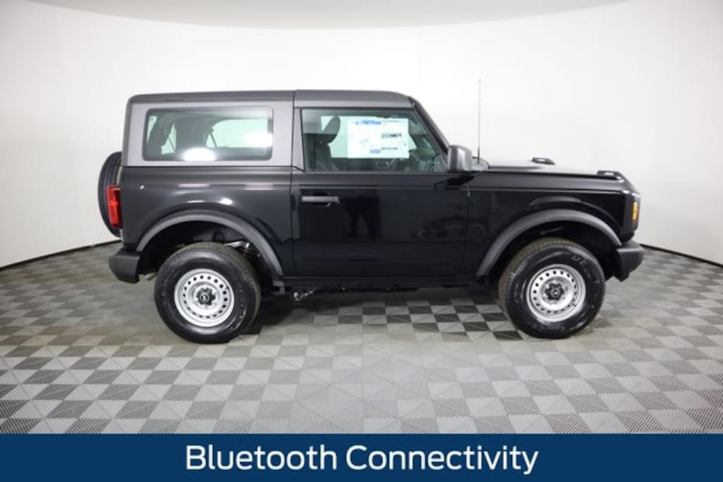 Shadow Black 2026 Ford Bronco 4WD 10-Speed Automatic 2.3L EcoBoost I-4 Bluetooth Connectivity, Ford Pass - Remote Start, Android Auto or Apple Car Play, FRONT AND REAR WEATHER TECH MATS, 4-Wheel Disc Brakes, 4.46 Axle Ratio, 7 Speakers, ABS brakes, Air Conditioning, AM/FM radio: SiriusXM with 360L, AM/FM Stereo, Auto High-beam Headlights, Brake assist, Cloth Bucket Seats, Compass, Convertible HardTop, Convertible roof lining, Delay-off headlights, Driver door bin, Driver vanity mirror, Dual front impact airbags, Dual front side impact airbags, Electronic Stability Control, Emergency communication system: 911 Assist, Equipment Group 101A, Exterior Parking Camera Rear, Ford Connectivity Package (1-Year Included), Front anti-roll bar, Front Bucket Seats, Front Center Armrest, Front reading lights, Front wheel independent suspension, Fully automatic headlights, Glass rear window, Heated door mirrors, Illuminated entry, Integrated roll-over protection, Low tire pressure warning, Occupant sensing airbag, Outside temperature display, Overhead airbag, Overhead console, Panic alarm, Passenger door bin, Passenger vanity mirror, Power door mirrors, Power steering, Power windows, Radio data system, Rear window defroster, Rear window wiper, Remote keyless entry, Security system, SiriusXM with 360L, Speed control, Split folding rear seat, Steering wheel mounted audio controls, SYNC 4, Tachometer, Telescoping steering wheel, Tilt steering wheel, Traction control, Trip computer, Variably intermittent wipers, Wheels: 16" Bright Polished Silver-Painted Steel.