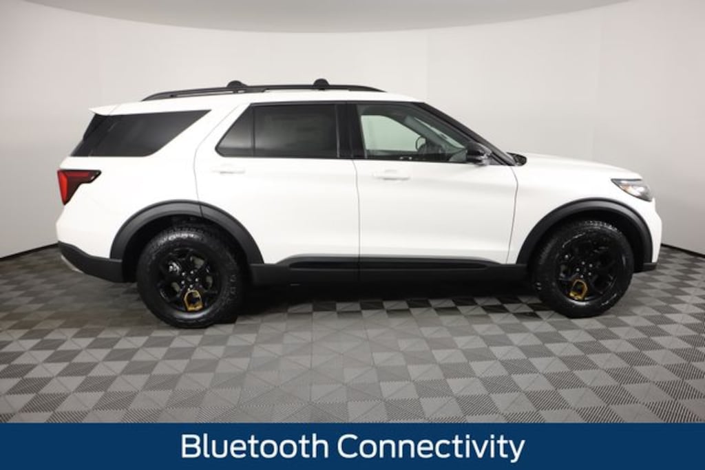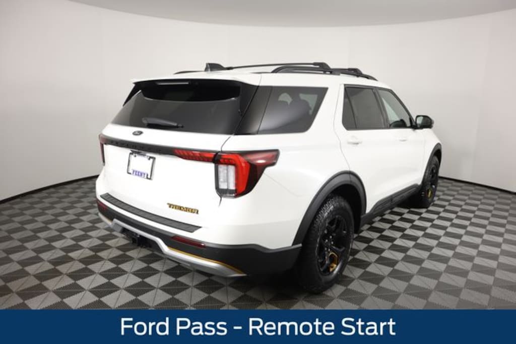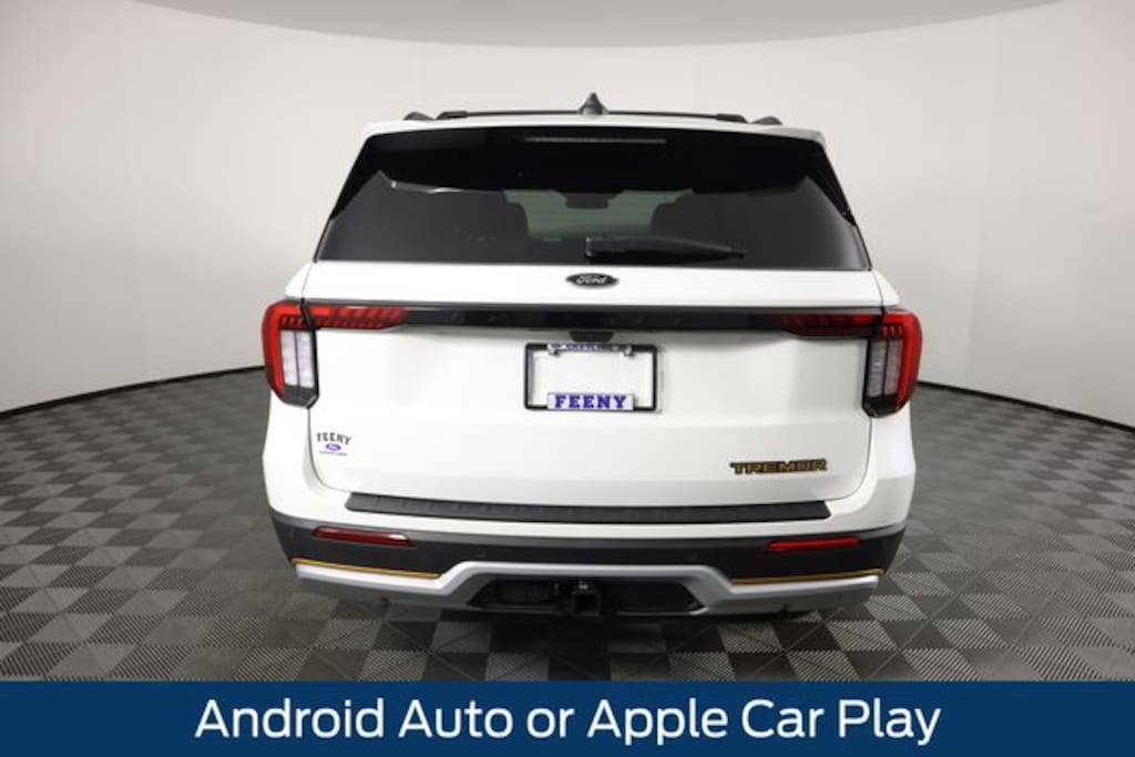 Star White Metallic Tri-Coat 2026 Ford Explorer Tremor 4WD 10-Speed Automatic 2.3L EcoBoost I-4 Bluetooth Connectivity, Ford Pass - Remote Start, Android Auto or Apple Car Play, 1st 2nd & 3rd row WEATHER TECH MATS, 4WD, 10 Speakers, 3rd Row PowerFold Seats, 3rd row seats: bench, 4-Wheel Disc Brakes, ABS brakes, Air Conditioning, Alloy wheels, AM/FM radio: SiriusXM with 360L, Ambient Lighting, Apple CarPlay/Android Auto, Auto High-beam Headlights, Auto-Dimming Interior Rear-View Mirror, Automatic temperature control, Brake assist, Compass, Delay-off headlights, Driver door bin, Driver vanity mirror, Dual front impact airbags, Dual front side impact airbags, Electronic Stability Control, Emergency communication system: 911 Assist, Equipment Group 800A Standard Package, Exterior Parking Camera Rear, Four wheel independent suspension, Front anti-roll bar, Front Bucket Seats, Front Center Armrest, Front dual zone A/C, Front fog lights, Front reading lights, Fully automatic headlights, Heated door mirrors, Heated front seats, Heated rear seats, Heated steering wheel, Heated/Ventilated Miko Captain's Chairs, Illuminated entry, Knee airbag, Leather steering wheel, Low tire pressure warning, Manual-Folding Sideview Mirrors, Memory Driver's Seat, Navigation System, Occupant sensing airbag, Outside temperature display, Overhead airbag, Overhead console, Panic alarm, Passenger door bin, Passenger vanity mirror, Power door mirrors, Power driver seat, Power Liftgate, Power passenger seat, Power steering, Power windows, Radio: B&O Sound System by Bang & Olufsen, Rear air conditioning, Rear anti-roll bar, Rear reading lights, Rear window defroster, Rear window wiper, Remote keyless entry, SecuriCode Keyless Entry Keypad (DIO), Security system, Speed control, Speed-sensing steering, Speed-Sensitive Wipers, Split folding rear seat, Spoiler, Sport steering wheel, Steering wheel mounted audio controls, Tachometer, Telescoping steering wheel, Tilt steering wheel, Traction control, Tremor Convenience Package, Trip computer, Variably intermittent wipers, Ventilated front seats, Wheels: 18" High Gloss Black-Painted Aluminum.