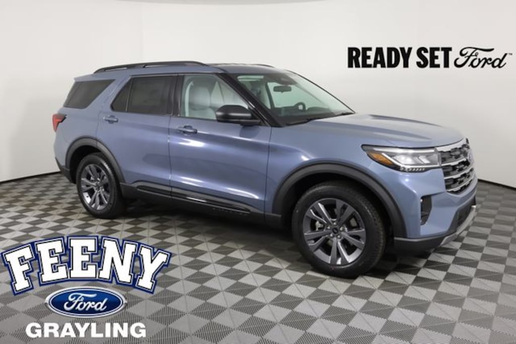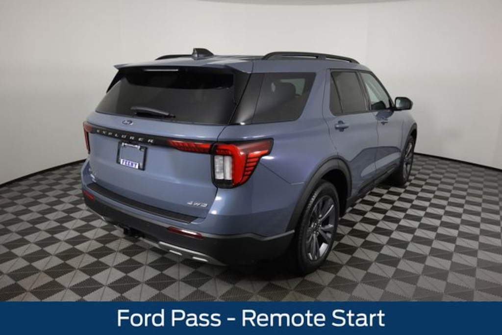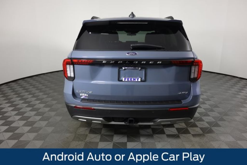 VAPOR BLUE 2026 Ford Explorer Active 4WD 10-Speed Automatic 2.3L EcoBoost I-4 Bluetooth Connectivity, Ford Pass - Remote Start, Android Auto or Apple Car Play, EQUIPMENT GROUP 200A, 2.3L ECOBOOST I-4 ENGINE, 10-SPEED AUTO TRANSMISSION, P255/55R20 A/S BSW TIRES, 20" CRBN GRAY-PTD 10 SPK WHLS, ACTIVE COMFORT PACKAGE, REMOTE START SYSTEM, LED FOG LAMPS, HEATED STEERING WHEEL, LED SIGNATURE LIGHTING, 8-WAY POWER PASSENGER SEAT, INFLATOR KIT- DELETE SPARE TIRE, FORD CONNECTIVITY -1YR TRIAL, WEATHER TECH MATS 1ST 2ND & 3RD ROW, 4WD, ABS brakes, Active Cruise Control, Alloy wheels, Compass, Electronic Stability Control, Front dual zone A/C, Heated door mirrors, Illuminated entry, Low tire pressure warning, Navigation System, Remote keyless entry, Traction control.