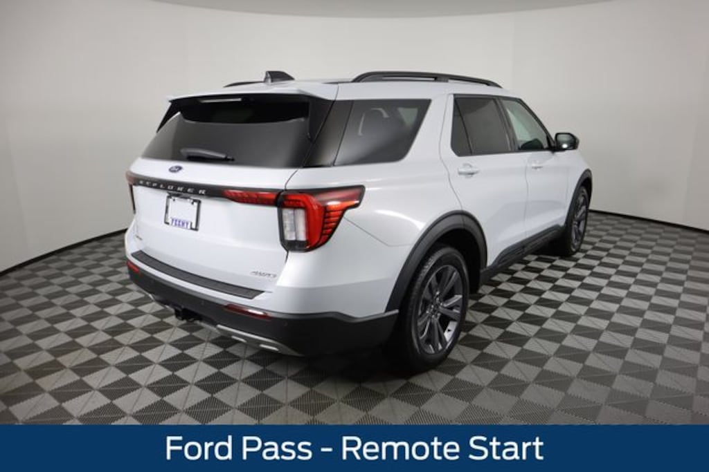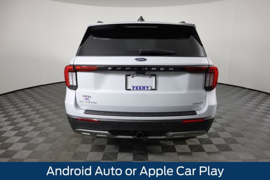 Space White Metallic 2026 Ford Explorer Active 4WD 10-Speed Automatic 2.3L EcoBoost I-4 Bluetooth Connectivity, Ford Pass - Remote Start, Android Auto or Apple Car Play, 4WD, 3rd row seats: bench, 4-Wheel Disc Brakes, 6 Speakers, ABS brakes, Active Comfort Package, Air Conditioning, Alloy wheels, AM/FM radio: SiriusXM with 360L, AM/FM Stereo, Apple CarPlay/Android Auto, Auto High-beam Headlights, Automatic temperature control, Brake assist, Bumpers: body-color, Compass, Delay-off headlights, Driver door bin, Driver vanity mirror, Dual front impact airbags, Dual front side impact airbags, Electronic Stability Control, Emergency communication system: 911 Assist, Equipment Group 200A Standard Package, Exterior Parking Camera Rear, Four wheel independent suspension, Front anti-roll bar, Front Bucket Seats, Front Center Armrest, Front dual zone A/C, Front Fascia, Front reading lights, Fully automatic headlights, Heated ActiveX Seating Material Captain's Chairs, Heated door mirrors, Heated Steering Wheel, Illuminated entry, Knee airbag, Low tire pressure warning, Navigation System, Occupant sensing airbag, Outside temperature display, Overhead airbag, Overhead console, Panic alarm, Passenger door bin, Passenger vanity mirror, Power driver seat, Power Liftgate, Power steering, Power windows, Rear air conditioning, Rear anti-roll bar, Rear reading lights, Rear window defroster, Rear window wiper, Remote keyless entry, Remote Start System, Second Row Hvac Controls, SecuriCode Keyless Entry Keypad (DIO), Security system, Speed control, Speed-sensing steering, Speed-Sensitive Wipers, Split folding rear seat, Spoiler, Steering wheel mounted audio controls, Tachometer, Telescoping steering wheel, Tilt steering wheel, Traction control, Trip computer, Unique Cloth Captain's Chairs, Unique Cloth Heated Captain's Chairs, Variably intermittent wipers, Wheels: 20" Carbonized Gray-Painted Aluminum.