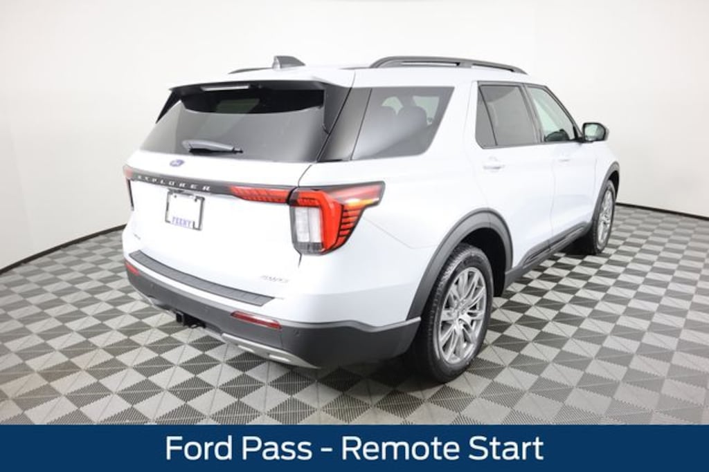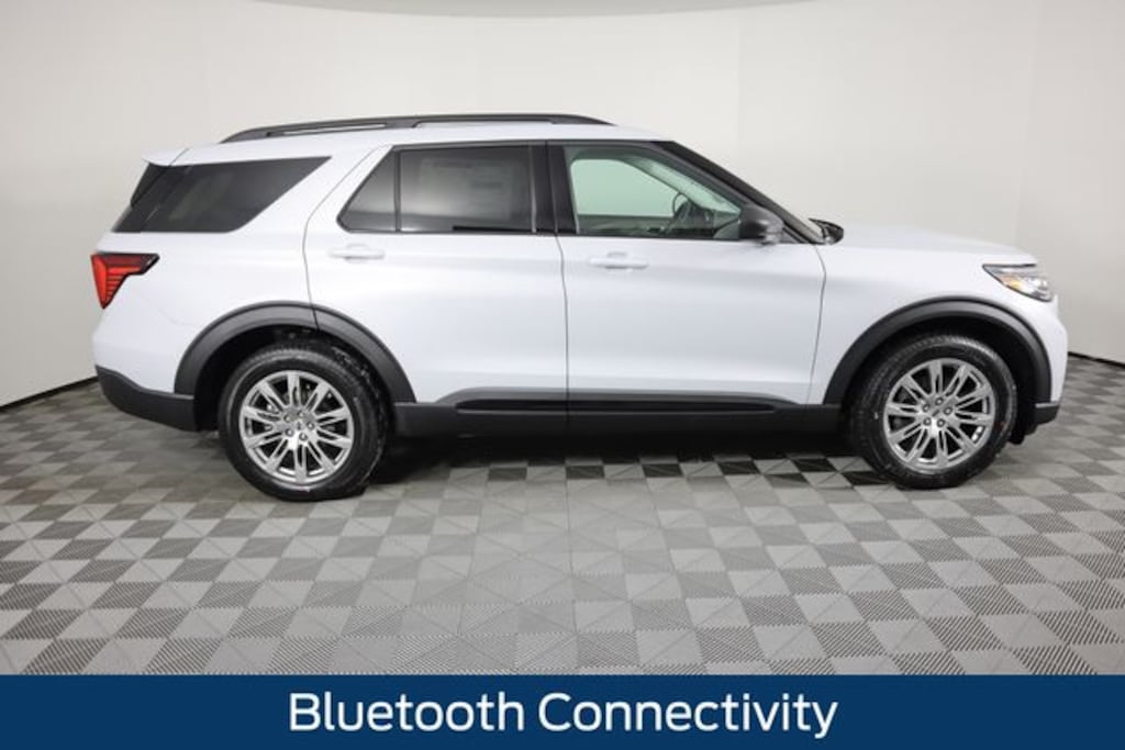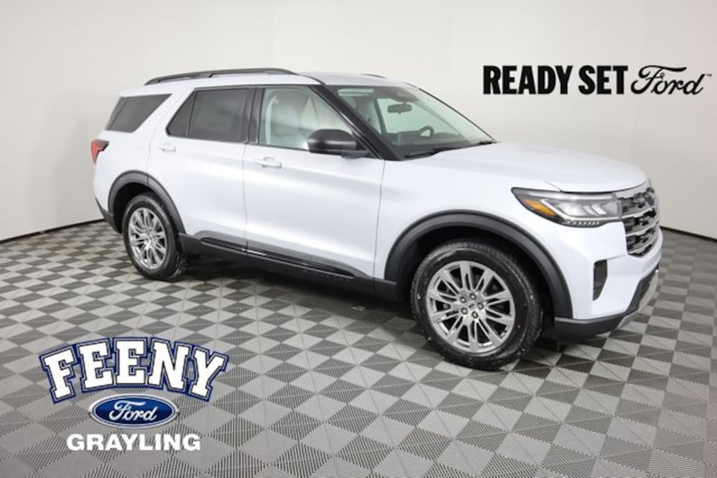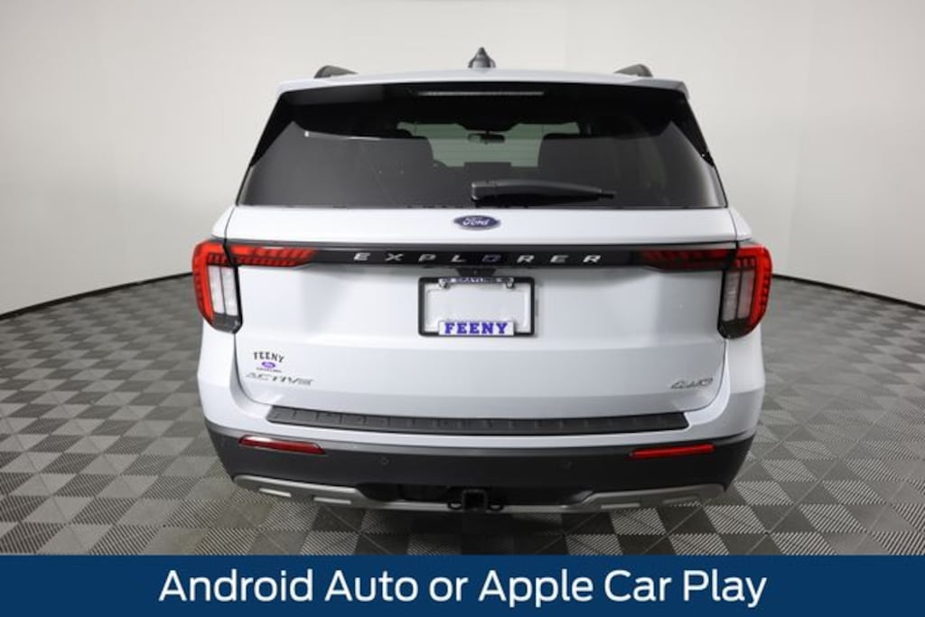 Space White Metallic 2026 Ford Explorer Active 4WD 10-Speed Automatic 2.3L EcoBoost I-4 Bluetooth Connectivity, Ford Pass - Remote Start, Android Auto or Apple Car Play, 1ST 2ND & 3RD ROW WEATHER TECH MATS, 4WD, 3rd row seats: bench, 4-Wheel Disc Brakes, 6 Speakers, ABS brakes, Active Comfort Package, Air Conditioning, Alloy wheels, AM/FM radio: SiriusXM with 360L, AM/FM Stereo, Apple CarPlay/Android Auto, Auto High-beam Headlights, Automatic temperature control, Brake assist, Bumpers: body-color, Compass, Delay-off headlights, Driver door bin, Driver vanity mirror, Dual front impact airbags, Dual front side impact airbags, Electronic Stability Control, Emergency communication system: 911 Assist, Equipment Group 200A Standard Package, Exterior Parking Camera Rear, Four wheel independent suspension, Front anti-roll bar, Front Bucket Seats, Front Center Armrest, Front dual zone A/C, Front Fascia, Front reading lights, Fully automatic headlights, Heated ActiveX Seating Material Captain's Chairs, Heated door mirrors, Heated Steering Wheel, Illuminated entry, Knee airbag, Low tire pressure warning, Navigation System, Occupant sensing airbag, Outside temperature display, Overhead airbag, Overhead console, Panic alarm, Passenger door bin, Passenger vanity mirror, Power driver seat, Power Liftgate, Power steering, Power windows, Rear air conditioning, Rear anti-roll bar, Rear reading lights, Rear window defroster, Rear window wiper, Remote keyless entry, Remote Start System, Second Row Hvac Controls, SecuriCode Keyless Entry Keypad (DIO), Security system, Speed control, Speed-sensing steering, Speed-Sensitive Wipers, Split folding rear seat, Spoiler, Steering wheel mounted audio controls, Tachometer, Telescoping steering wheel, Tilt steering wheel, Traction control, Trip computer, Unique Cloth Captain's Chairs, Unique Cloth Heated Captain's Chairs, Variably intermittent wipers, Wheels: 18" Sparkle Silver-Painted Aluminum, Wheels: 20" Luster Nickel-Painted Aluminum.