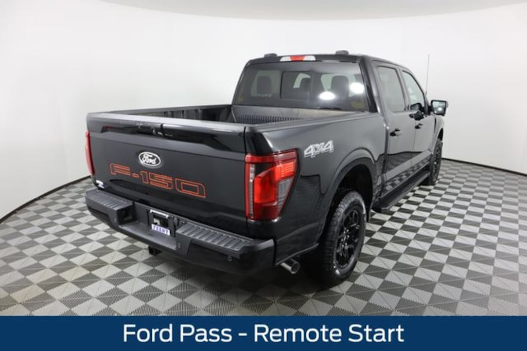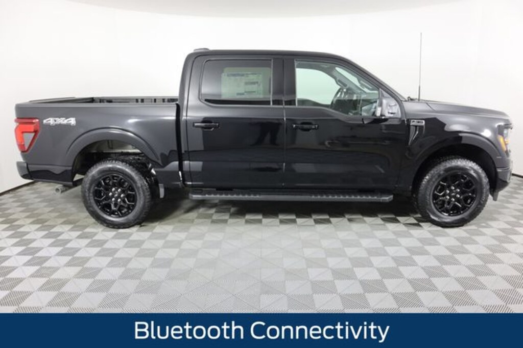 Agate Black Metallic 2026 Ford F-150 XLT 4WD 10-Speed Automatic 2.7L V6 EcoBoost Bluetooth Connectivity, Ford Pass - Remote Start, Android Auto or Apple Car Play, FRONT AND REAR WEATHER TECH MATS, DROP-IN BED LINER, F-150 TAILGATE DECAL, 4WD, 18" Painted Aluminum Wheels, 3.55 Axle Ratio, 360 Degree Camera, 4-Wheel Disc Brakes, 400W Pro Power Onboard (cab & Bed), 6 Speakers, 6" Black Running Boards, ABS brakes, Adaptive Cruise Control with Stop and Go, Air Conditioning, AM/FM radio: SiriusXM with 360L, Auto High-beam Headlights, Auto-Dimming Rear-View Mirror, Black Exterior Badging, Black Grille, Body-Color Door Handles, Body-Color Front and Rear Bumpers, Brake assist, Bumpers: body-color, Chrome Front and Rear Bumpers, Cloth 40/20/40 Front Seat, Compass, Dark Interior Appliques, Delay-off headlights, Driver door bin, Driver vanity mirror, Dual front impact airbags, Dual front side impact airbags, Dual-Zone Electronic Automatic Temperature Control, Electronic Stability Control, Emergency communication system: SYNC 4 911 Assist, Equipment Group 302A Mid, Ford Co-Pilot360 Assist 2.0, Ford Connectivity Package (1-Year Included), Front anti-roll bar, Front Center Armrest, Front fog lights, Front Parking Sensors, Front reading lights, Front wheel independent suspension, Fully automatic headlights, Gray Box Side Decal, GVWR: 6,650 lbs Payload Package, Heated door mirrors, Heated Front Seats, Illuminated entry, Intelligent Access with Push Button Start, Internet access capable: 5G Modem - Ford Connectivity Package, Low tire pressure warning, Occupant sensing airbag, Outside temperature display, Overhead airbag, Overhead console, Panic alarm, Passenger door bin, Passenger vanity mirror, Power door mirrors, Power Glass Heated Sideview Mirrors, Power steering, Power windows, Power-Sliding Rear Window, Radio data system, Radio: AM/FM Stereo with SiriusXM 360L, Rear Parking Sensors, Rear reading lights, Rear step bumper, Rear window defroster, Remote keyless entry, Remote Start System with Remote Tailgate Release, Security system, Speed control, Split folding rear seat, Steering wheel mounted audio controls, SYNC 4 with Enhanced Voice Recognition, Tachometer, Telescoping steering wheel, Tilt steering wheel, Towing Technology, Traction control, Trip computer, Unique Sport Cloth 40/Console/40 Front-Seats, Variably intermittent wipers, Wheels: 18" Gloss Black, Wrapped Steering Wheel, XLT Black Appearance Package.