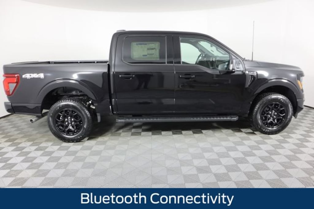 Agate Black Metallic 2026 Ford F-150 XLT 4WD 10-Speed Automatic 2.7L V6 EcoBoost Bluetooth Connectivity, Ford Pass - Remote Start, Android Auto or Apple Car Play, FRONT AND REAR WEATHER TECH MATS, 4WD, 18" Painted Aluminum Wheels, 3.55 Axle Ratio, 360 Degree Camera, 4-Wheel Disc Brakes, 400W Pro Power Onboard (cab & Bed), 6 Speakers, 6" Black Running Boards, ABS brakes, Adaptive Cruise Control with Stop and Go, Air Conditioning, Alloy wheels, AM/FM radio: SiriusXM with 360L, Auto High-beam Headlights, Auto-Dimming Rear-View Mirror, Black Exterior Badging, Black Grille, Black Platform Running Boards, Body-Color Door Handles, Body-Color Front and Rear Bumpers, Brake assist, Bumpers: body-color, Cloth 40/20/40 Front Seat, Compass, Dark Interior Appliques, Delay-off headlights, Driver door bin, Driver vanity mirror, Dual front impact airbags, Dual front side impact airbags, Dual-Zone Electronic Automatic Temperature Control, Electronic Stability Control, Emergency communication system: SYNC 4 911 Assist, Equipment Group 302A Mid, Ford Co-Pilot360 Assist 2.0, Ford Connectivity Package (1-Year Included), Ford Connectivity Package (one-Time Purchase - 7 Years), Front anti-roll bar, Front Center Armrest, Front fog lights, Front Parking Sensors, Front reading lights, Front wheel independent suspension, Fully automatic headlights, Gray Box Side Decal, GVWR: 6,650 lbs Payload Package, Heated door mirrors, Heated Front Seats, Illuminated entry, Intelligent Access with Push Button Start, Internet access capable: 5G Modem - Ford Connectivity Package, Low tire pressure warning, Occupant sensing airbag, Outside temperature display, Overhead airbag, Overhead console, Panic alarm, Passenger door bin, Passenger vanity mirror, Power door mirrors, Power Glass Heated Sideview Mirrors, Power steering, Power windows, Power-Sliding Rear Window, Radio data system, Radio: AM/FM Stereo with SiriusXM 360L, Rear Parking Sensors, Rear reading lights, Rear step bumper, Rear window defroster, Remote keyless entry, Remote Start System with Remote Tailgate Release, Security system, Speed control, Split folding rear seat, Steering wheel mounted audio controls, SYNC 4 with Enhanced Voice Recognition, Tachometer, Telescoping steering wheel, Tilt steering wheel, Towing Technology, Traction control, Trip computer, Unique Sport Cloth 40/Console/40 Front-Seats, Variably intermittent wipers, Wheels: 18" Gloss Black, Wrapped Steering Wheel, XLT Black Appearance Package.