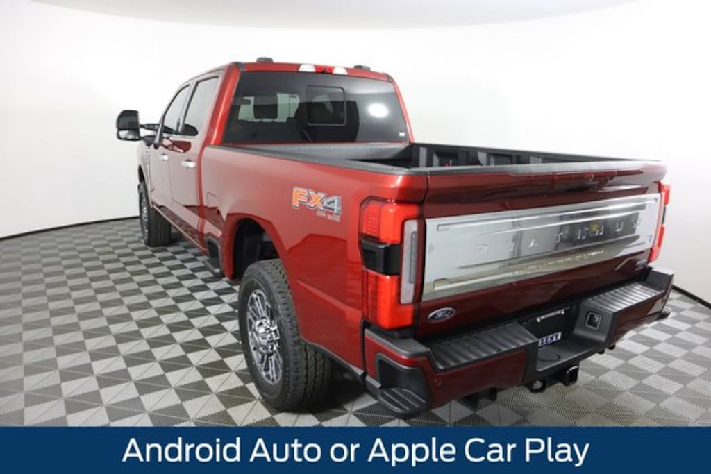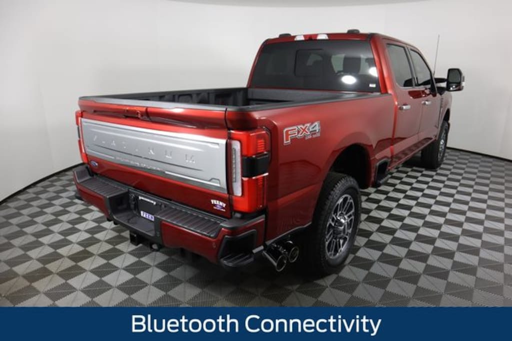 Ruby Red Metallic Tinted Clearcoat 2026 Ford F-350SD Platinum 4WD 10-Speed Automatic 6.7L High Output Power Stroke V8 Diesel Bluetooth Connectivity, Ford Pass - Remote Start, Android Auto or Apple Car Play, FRONT AND REAR WEATHER TECH MATS, 4WD, 4-Wheel Disc Brakes, 5th Wheel/Gooseneck Hitch Prep Package, ABS brakes, Adjustable pedals, Air Conditioning, Alloy wheels, AM/FM radio: SiriusXM with 360L, Auto High-beam Headlights, Auto-dimming Rear-View mirror, Automatic temperature control, Brake assist, Compass, Delay-off headlights, Driver door bin, Driver vanity mirror, Dual front impact airbags, Dual front side impact airbags, Electronic Stability Control, Electronic-Locking w/3.55 Axle Ratio, Emergency communication system: SYNC 4 911 Assist, Engine Block Heater, Flow-Through Console, Ford Connectivity Pack (One-Time Purchase - 7 Yrs), Ford Connectivity Package (1-Year Included), Front & Rear Wheel Well Liners (Pre-Installed), Front anti-roll bar, Front Bucket Seats, Front Center Armrest, Front dual zone A/C, Front fog lights, Front reading lights, Fully automatic headlights, FX4 Off-Road Package, Garage door transmitter, GVWR: 12,000 lb Payload Package, Heated door mirrors, Heated front seats, Heated rear seats, Heated steering wheel, Hill Descent Control, Illuminated entry, Internet access capable: 5G Modem - Ford Connectivity Package, LED Roof Clearance Lights, Low tire pressure warning, Max Recline Seats, Memory seat, Navigation system: Connected Navigation 1yr included, Off-Road Specifically Tuned Shock Absorbers, Order Code 713A, Outside temperature display, Overhead airbag, Overhead console, Panic alarm, Passenger door bin, Passenger vanity mirror, Pedal memory, Power door mirrors, Power driver seat, Power passenger seat, Power steering, Power windows, Power-Sliding Rear-Window w/Defrost, Privacy Glass, Radio: B&O Unleashed Sound System by Bang & Olufsen, Rain sensing wipers, Rear reading lights, Rear seat center armrest, Rear step bumper, Rear window defroster, Remote keyless entry, SecuriCode Keyless Entry Keypad (Driver's Side), Security system, SiriusXM w/360L, SiriusXM w/360L (3-Year Plan), Snow Plow Prep Package, Speed control, Split folding rear seat, Steering wheel mounted audio controls, SYNC 4 w/Enhanced Voice Recognition, Tachometer, Telescoping steering wheel, Tilt steering wheel, Tough Bed Spray-In Bedliner, Traction control, Trip computer, Turn signal indicator mirrors, Unique FX4 Off-Road Box Decal, Variably intermittent wipers, Ventilated front seats, Wheels: 20" Bright Machined Aluminum.